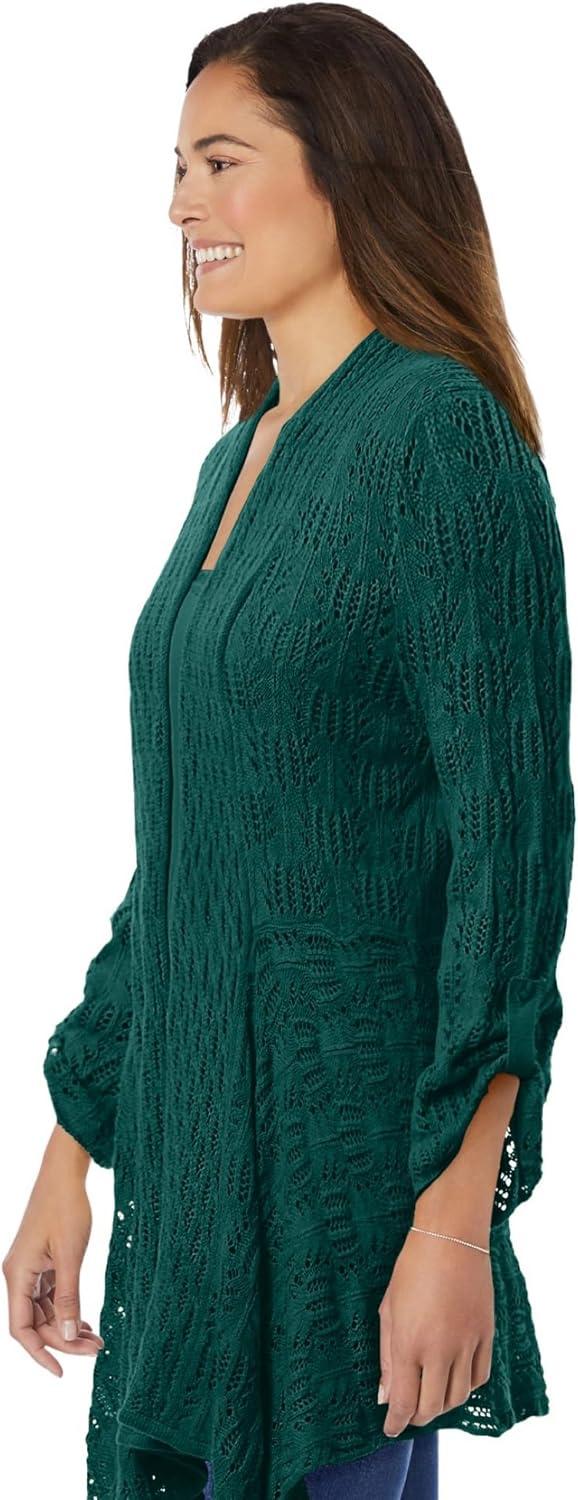 Woman Within Plus Size Open Front Pointelle Cardigan(Emerald Green)