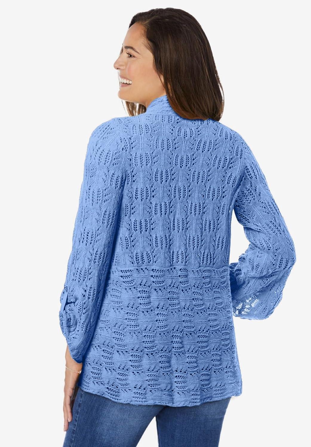 Woman Within Plus Size Open Front Pointelle Cardigan(French Blue)