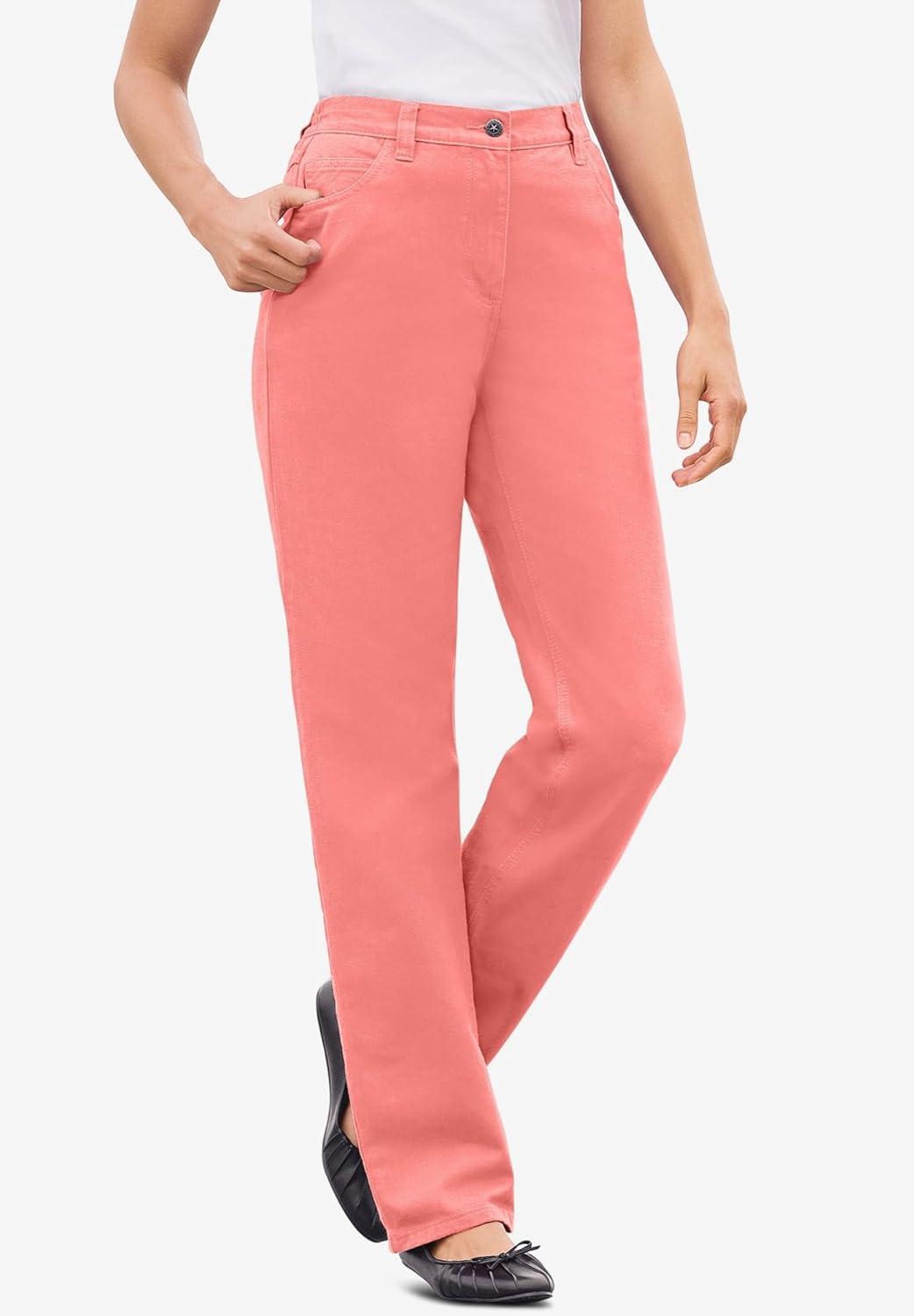 Woman Within Plus Size Perfect All-Cotton Back-Elastic Denim Jeans(Medium Stonewash)