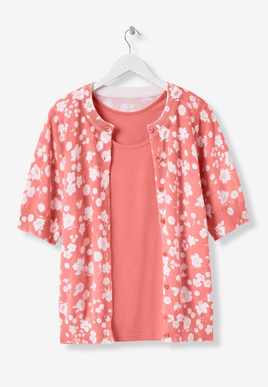 Effortlessly layer this button-front cardigan for year-round comfort and style. br> Perfect alone or over a tank, and ideal for office layering or cooler evenings. br> Enjoy the elbow-length sleeves for added coverage on warmer days. br> Alternative to a jacket with a shorter, more versatile sleeve length. br> Made from pure cotton for excellent breathability and comfort. br> Features a ribbed crewneck, cuffs, and hem for a polished look. br> Measures 28″ in length to provide the right amount of coverage. br> Machine washable for easy care, keeping convenience in mind. br> Imported br>