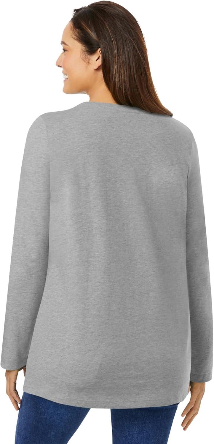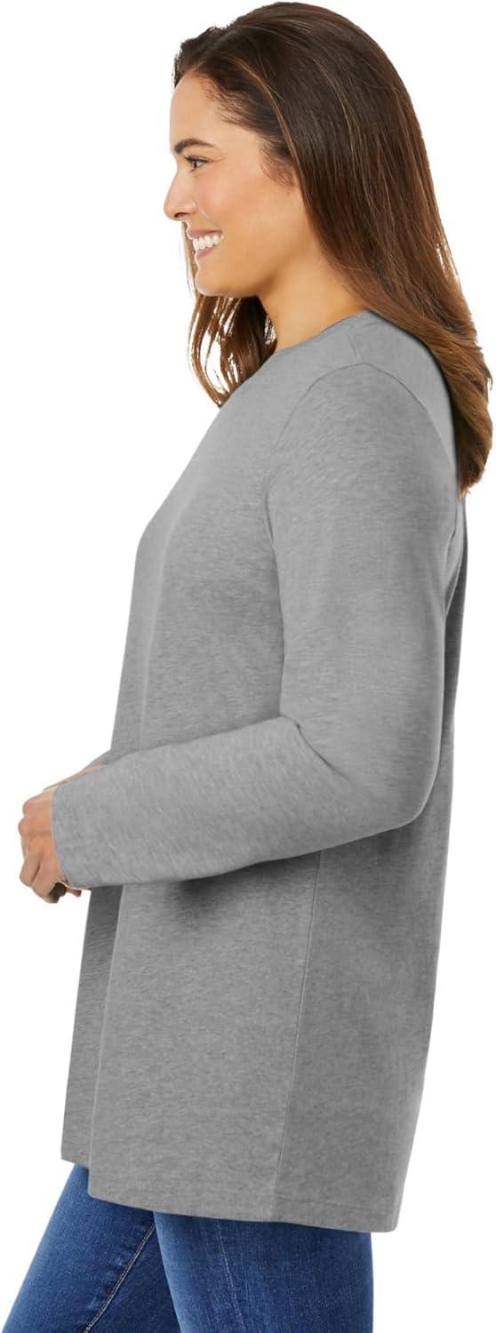 Woman Within Plus Size Perfect Long-Sleeve Crewneck Tee (Petite Available)(Medium Heather Grey)