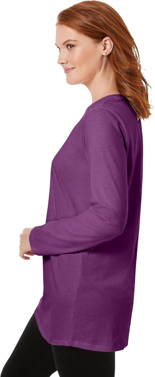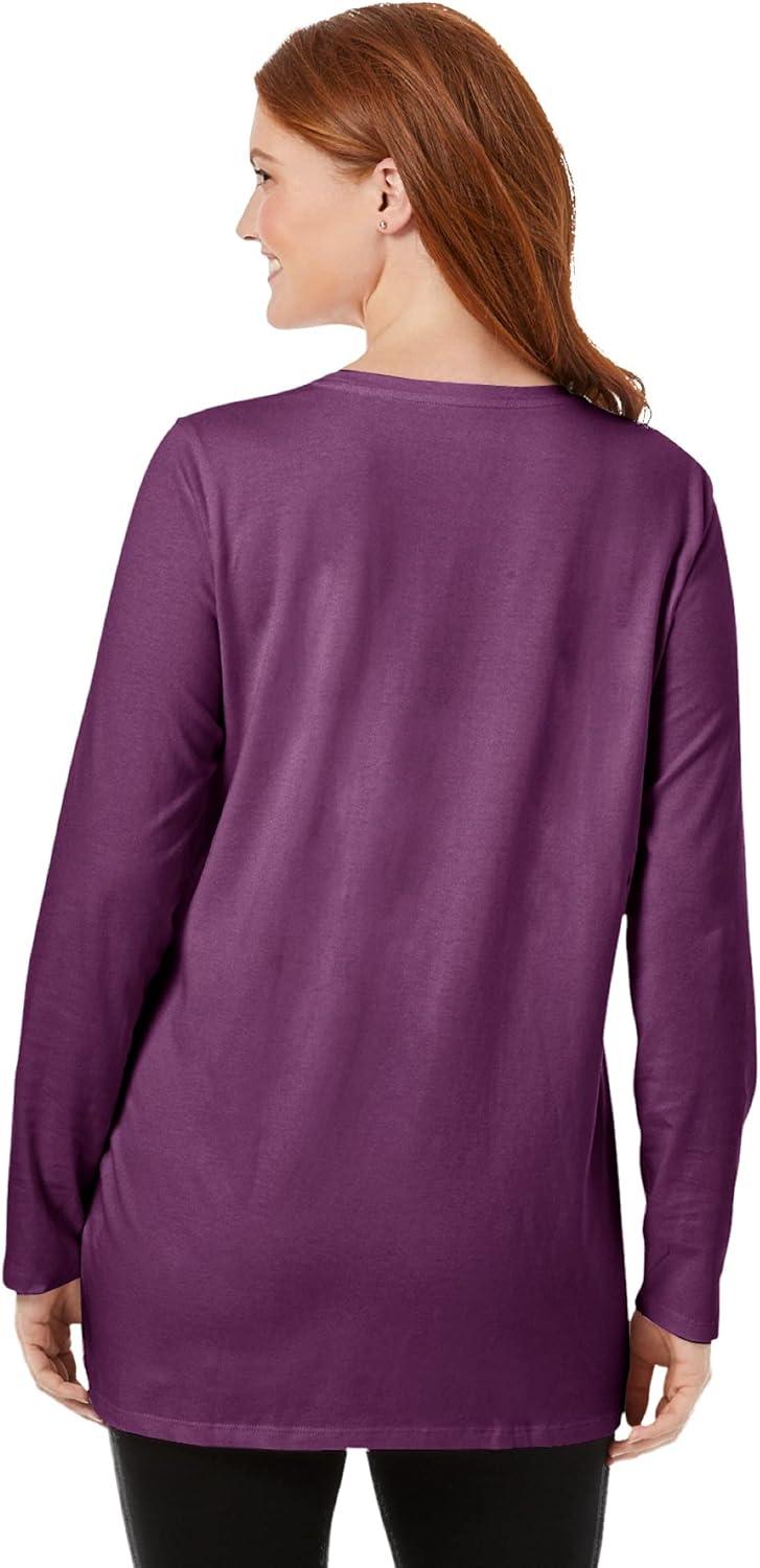 Woman Within Plus Size Perfect Long-Sleeve Crewneck Tunic(Heather Grey)