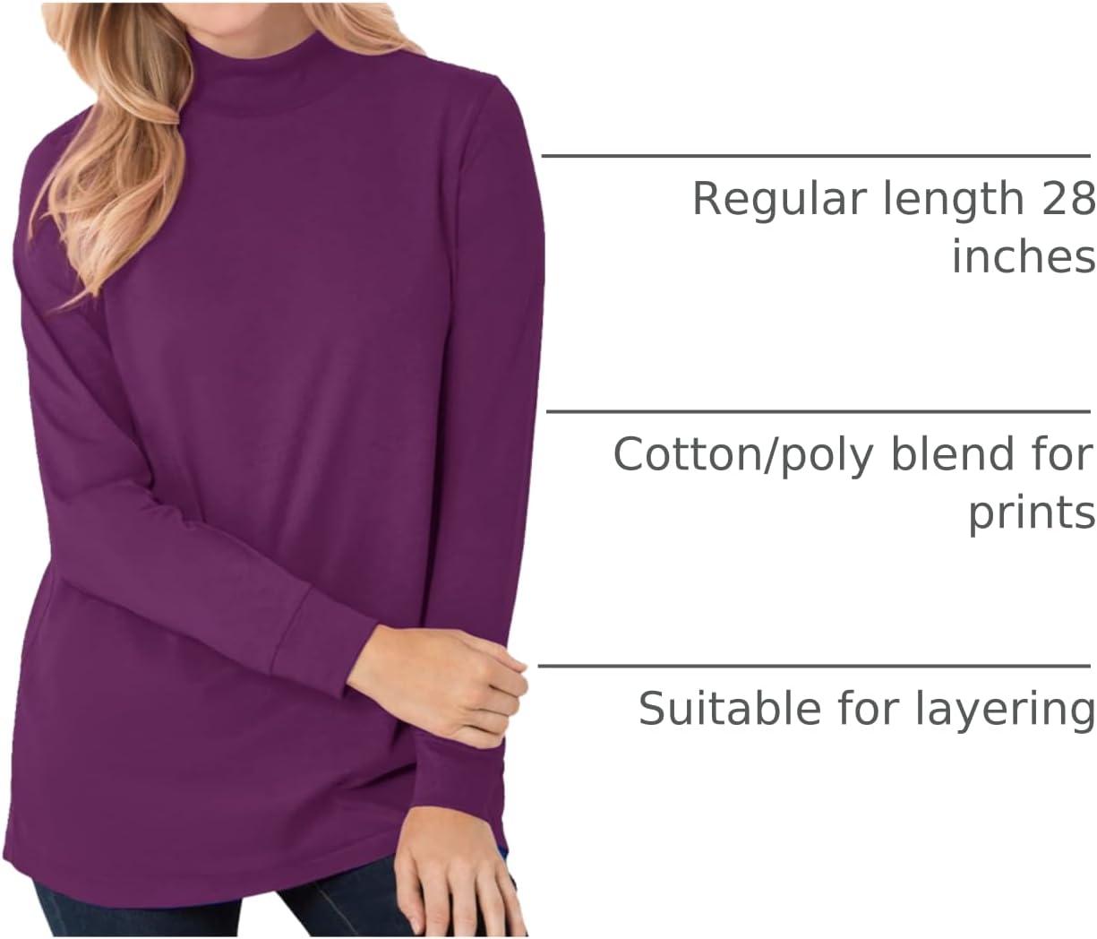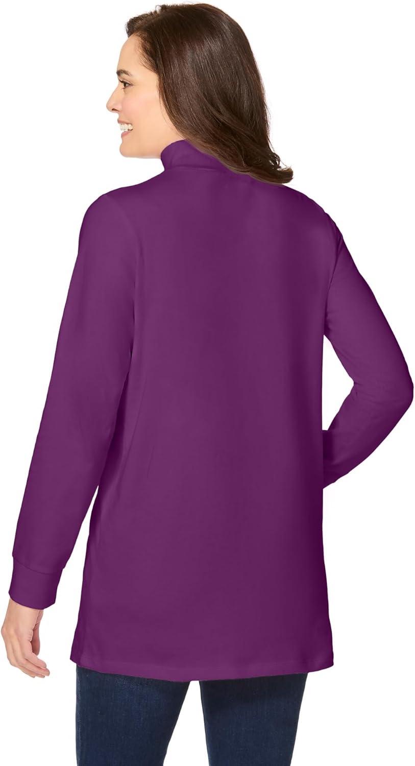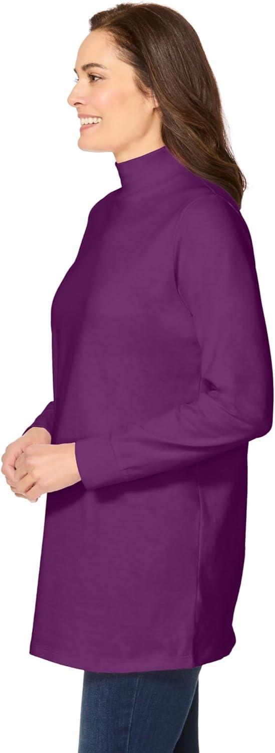 Woman Within Plus Size Perfect Long-Sleeve Mockneck Tee (Petite Available)(Plum Purple)