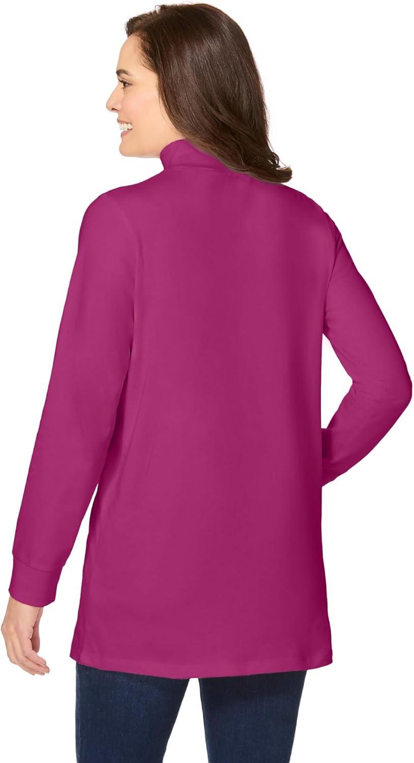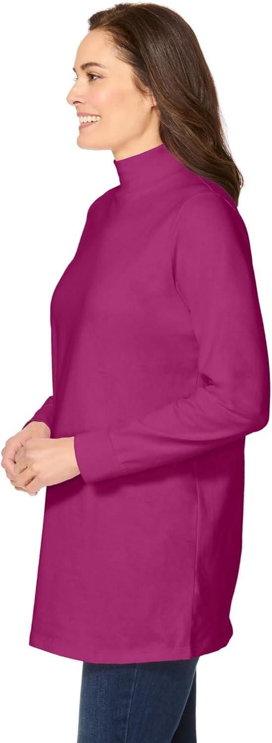 Woman Within Plus Size Perfect Long-Sleeve Mockneck Tee (Petite Available)(Raspberry)