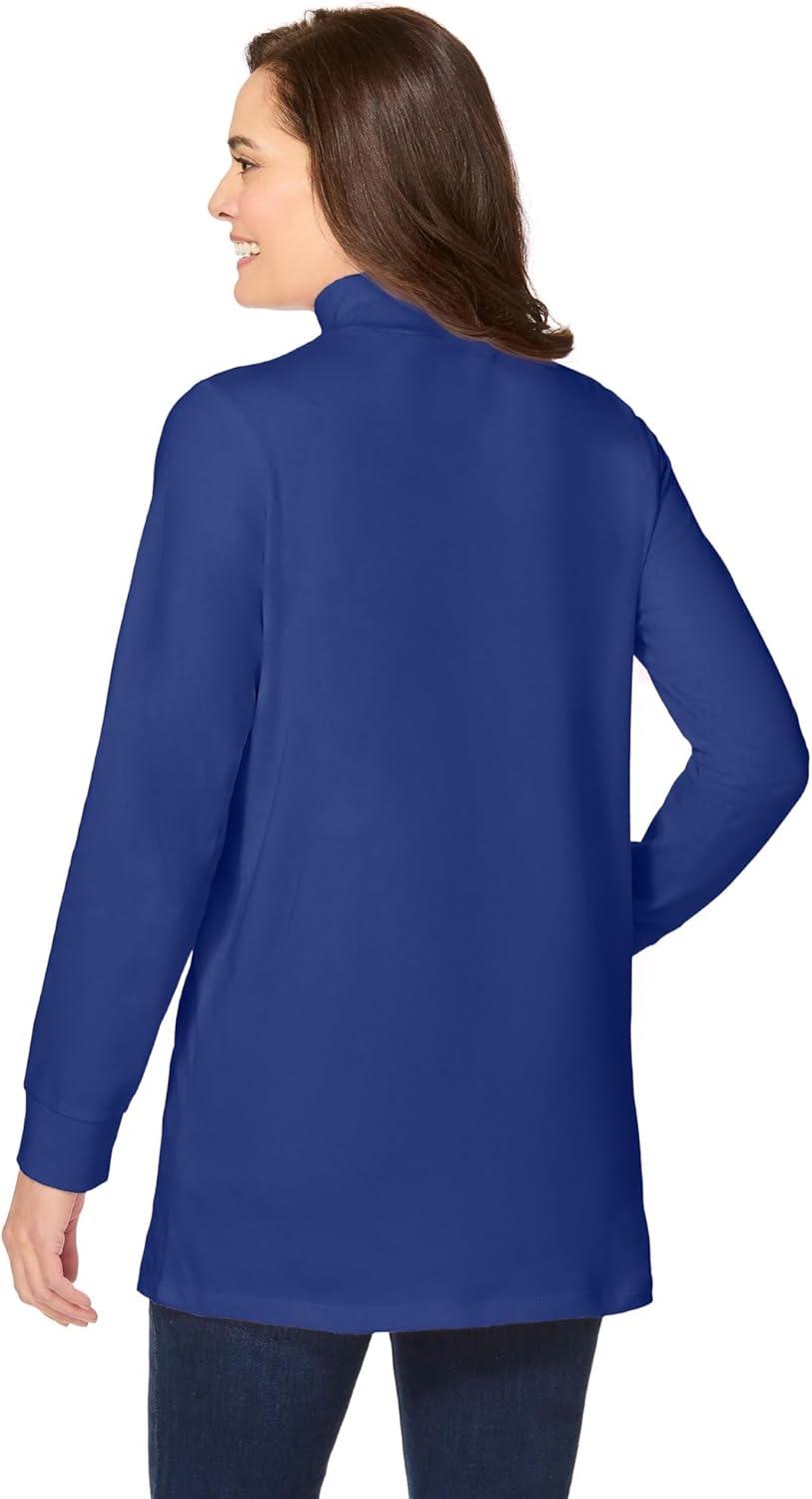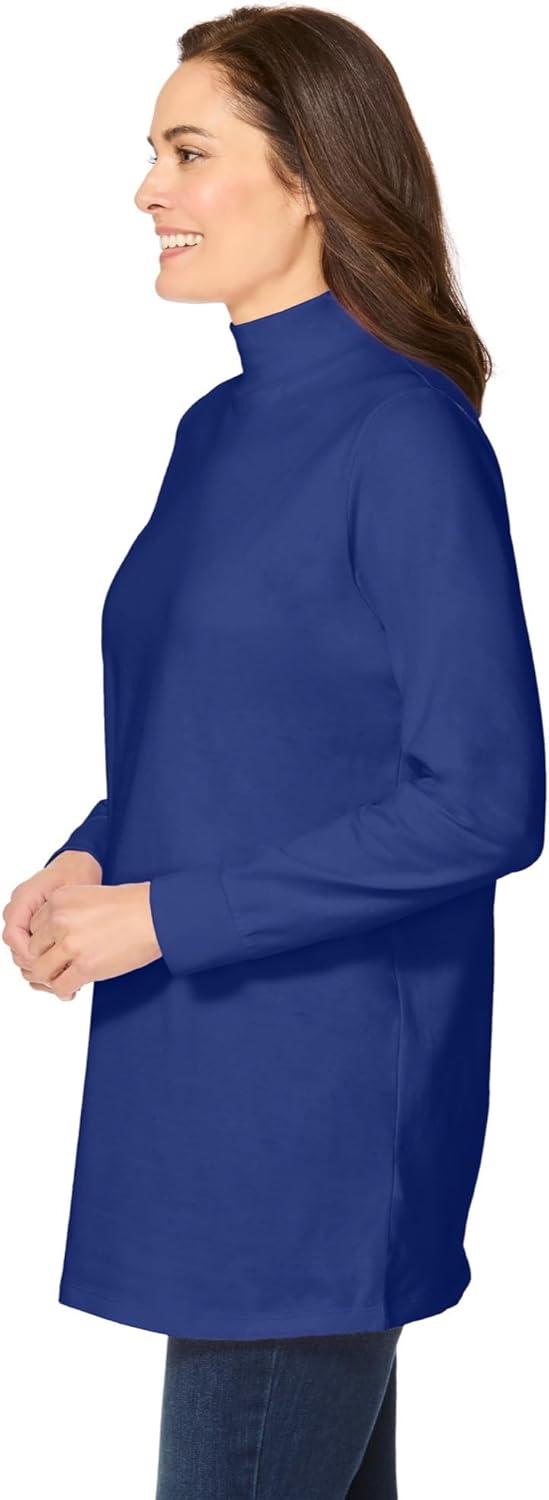 Woman Within Plus Size Perfect Long-Sleeve Mockneck Tee (Petite Available)(Ultra Blue)