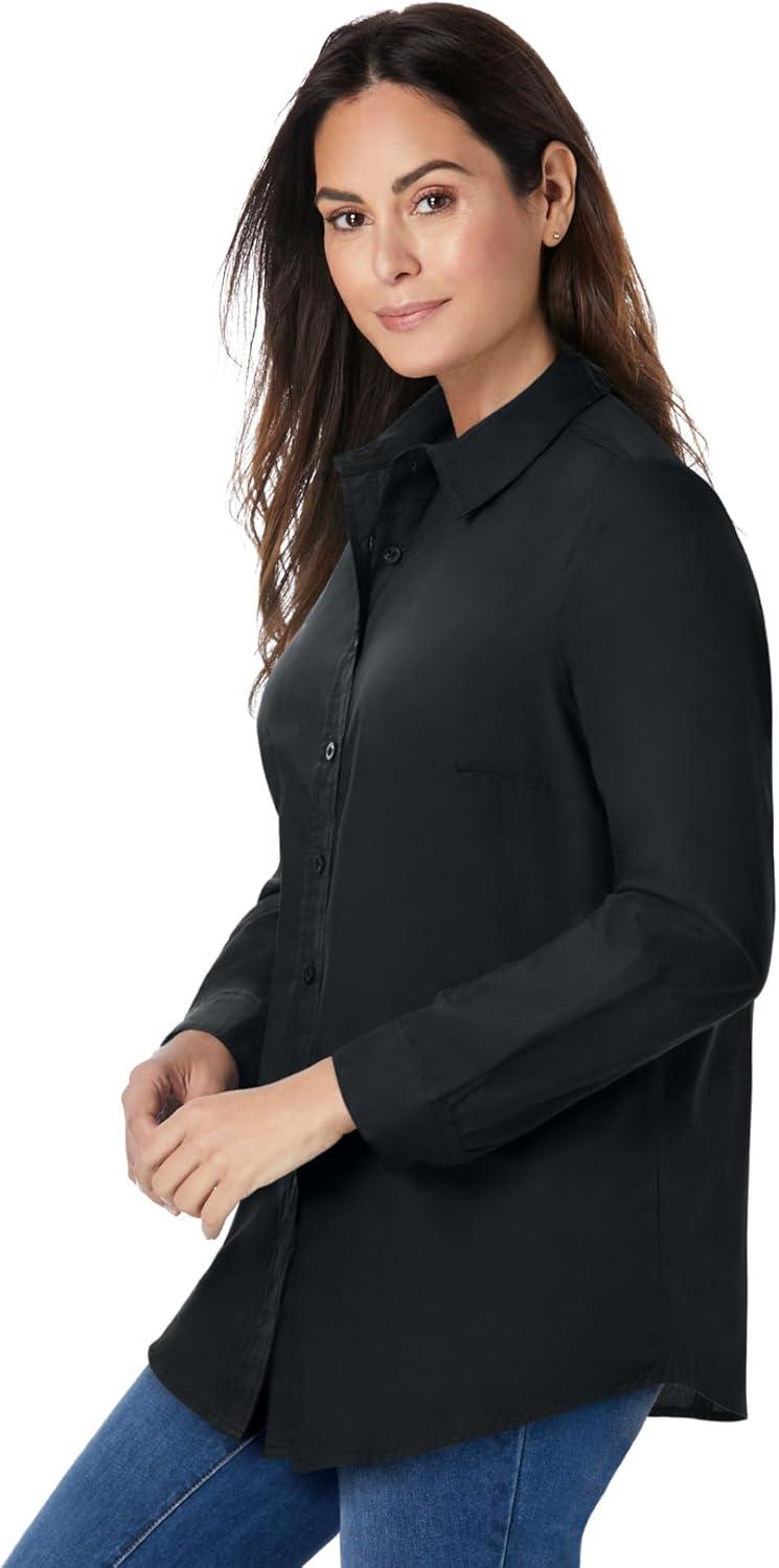 Woman Within Plus Size Perfect Long Sleeve Shirt(Original Black)