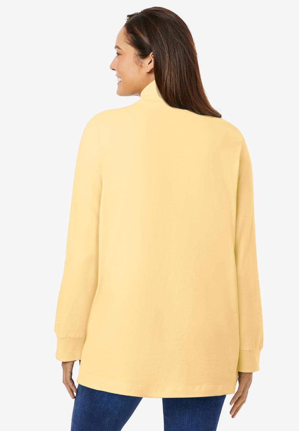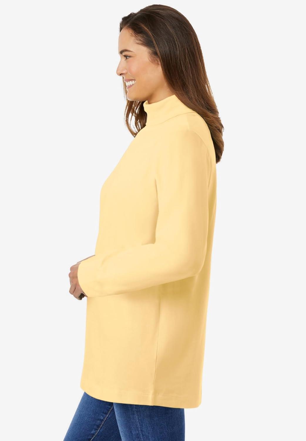 Woman Within Plus Size Perfect Long-Sleeve Turtleneck Tee (Petite Available)(Banana)