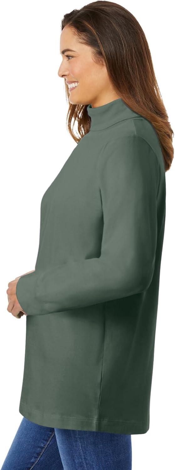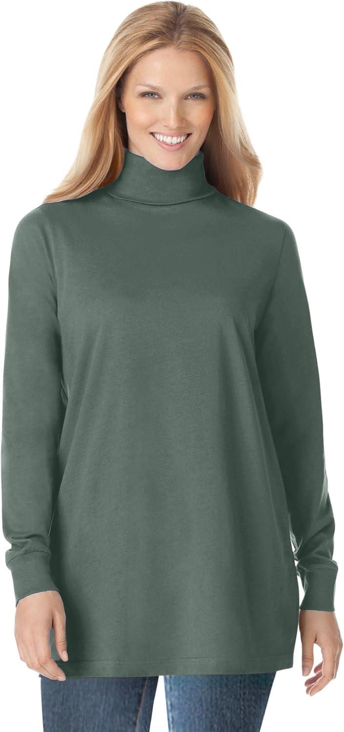 Woman Within Plus Size Perfect Long-Sleeve Turtleneck Tee (Petite Available)(Pine)