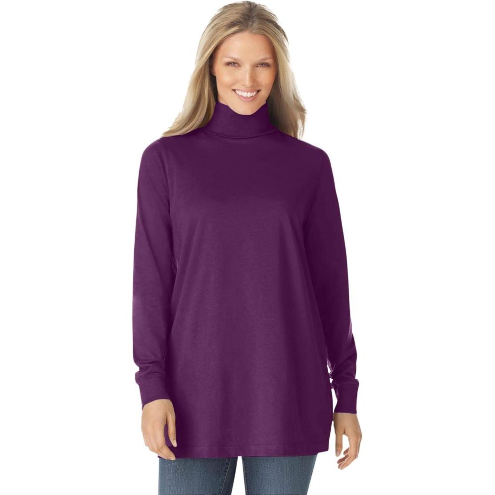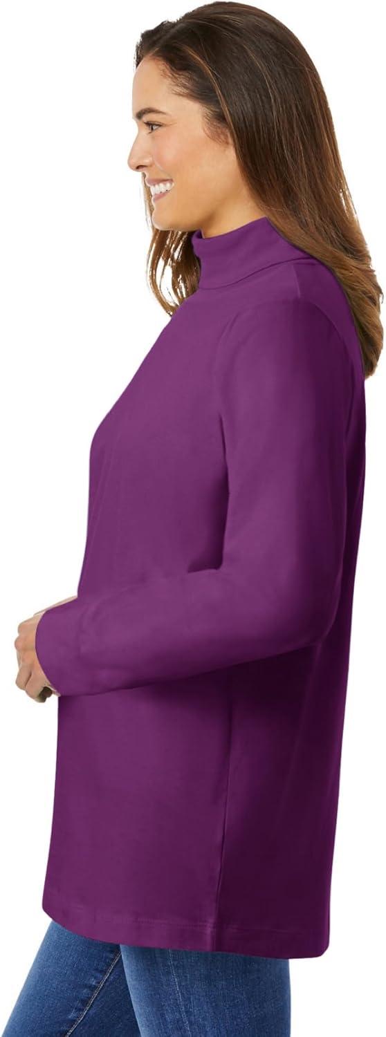 Woman Within Plus Size Perfect Long-Sleeve Turtleneck Tee (Petite Available)(Plum Purple)