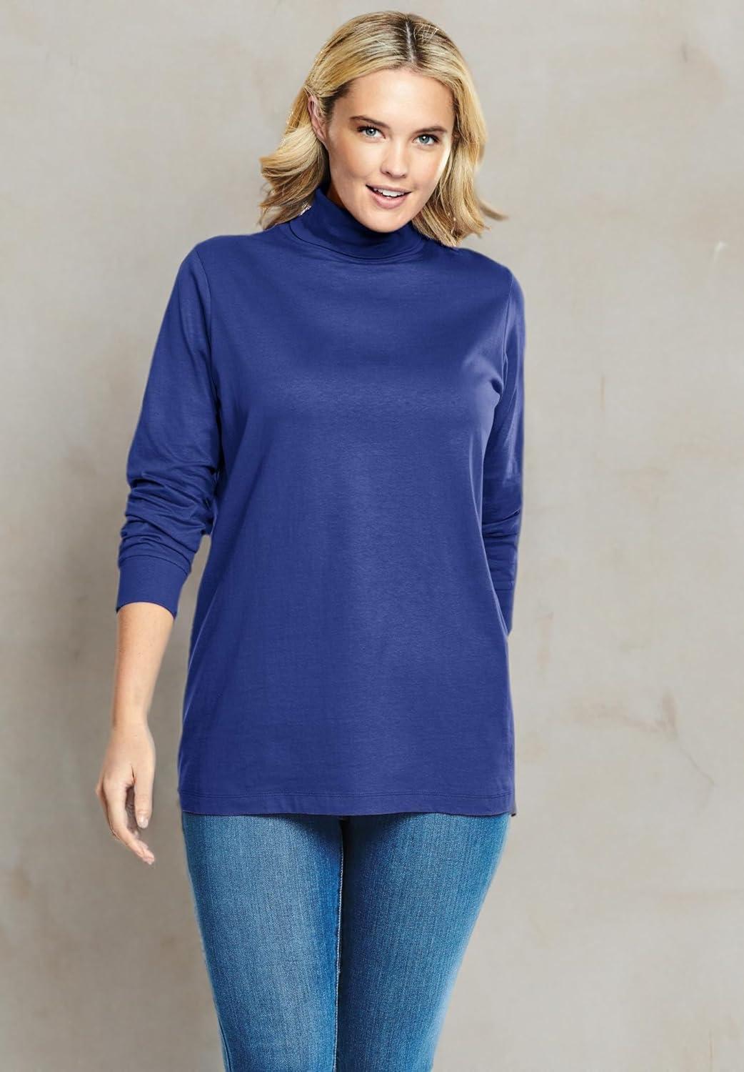 Woman Within Plus Size Perfect Long-Sleeve Turtleneck Tee (Petite Available)(Ultra Blue)