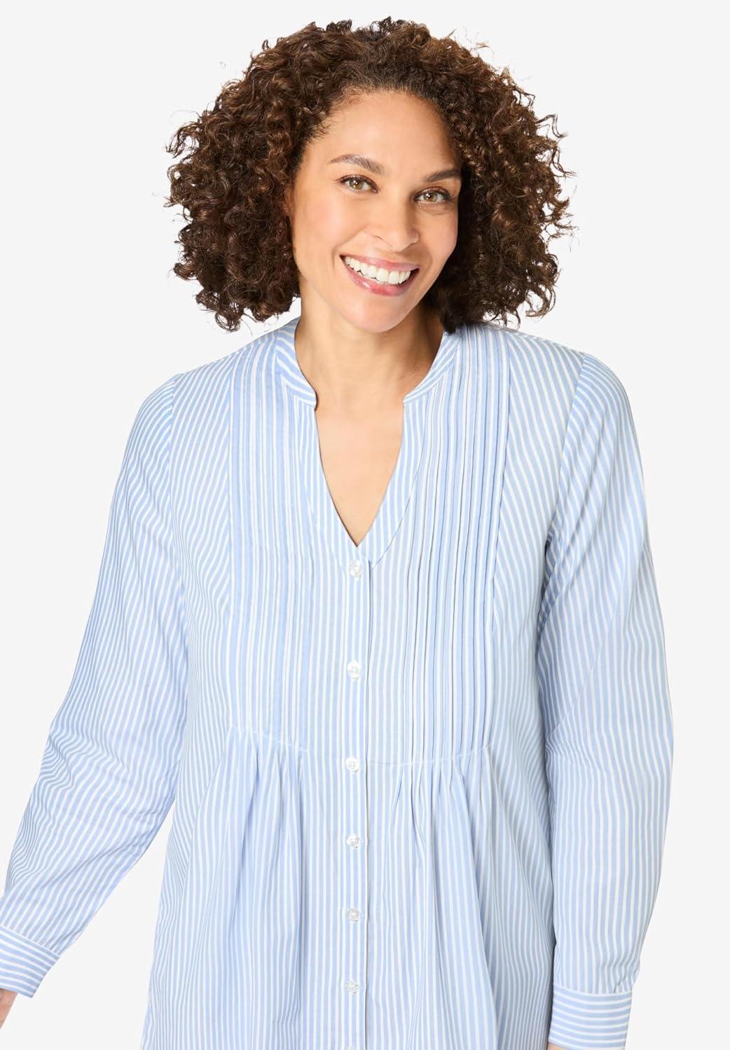 Woman Within Plus Size Perfect Pintuck Tunic(French Blue Stripe)