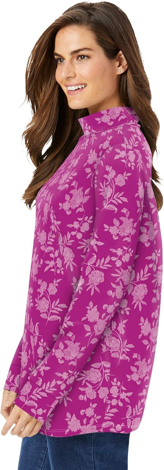 Woman Within Plus Size Perfect Printed Long-Sleeve Mockneck Tee(Navy Pretty Floral)