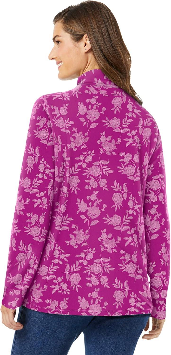 Woman Within Plus Size Perfect Printed Long-Sleeve Mockneck Tee(Petal Purple Floral Paisley)