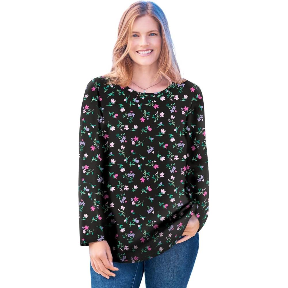 Be the first to review “Woman Within Plus Size Perfect Printed Long-Sleeve V-Neck Tee(Black Multi Tulip Flowers)”
