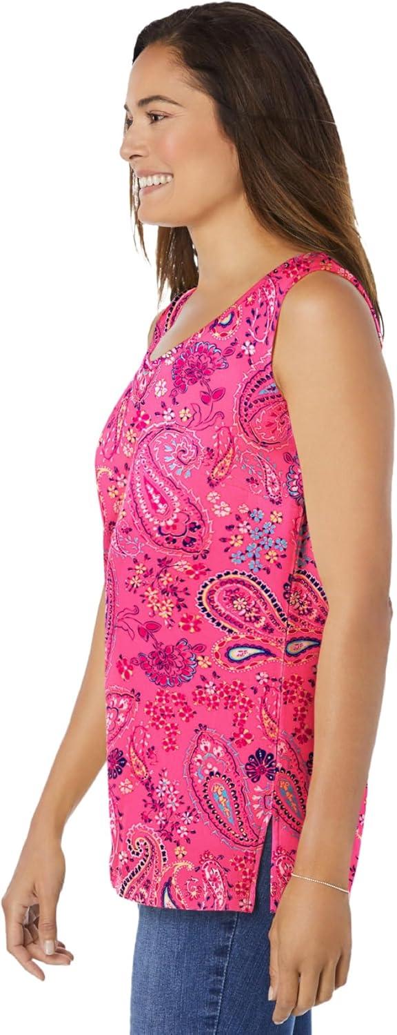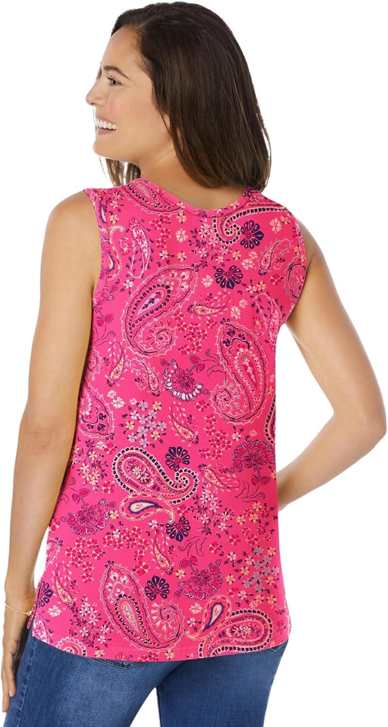 Woman Within Plus Size Perfect Printed Scoopneck Tank(Peony Petal Paisley)