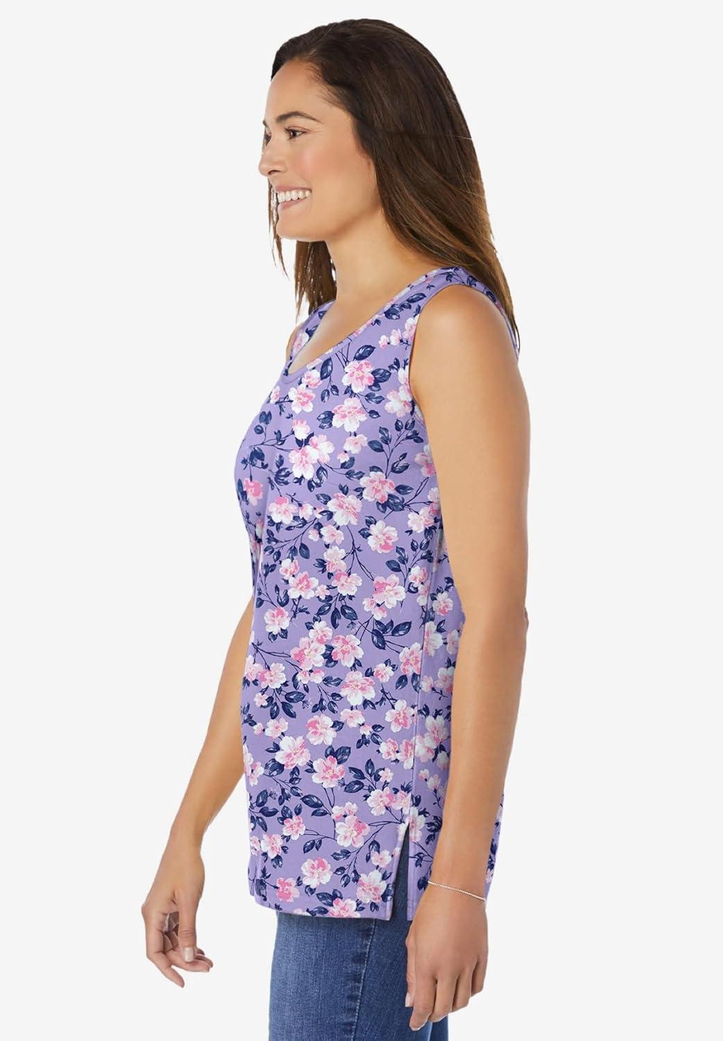 Woman Within Plus Size Perfect Printed Scoopneck Tank(Soft Iris Blossom Vine)