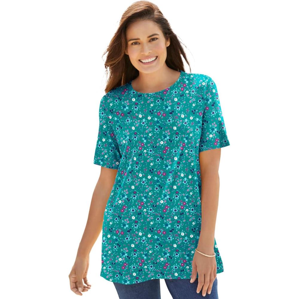 Woman Within Plus Size Perfect Printed Short-Sleeve Crewneck Tee(Waterfall Lovely Ditsy)