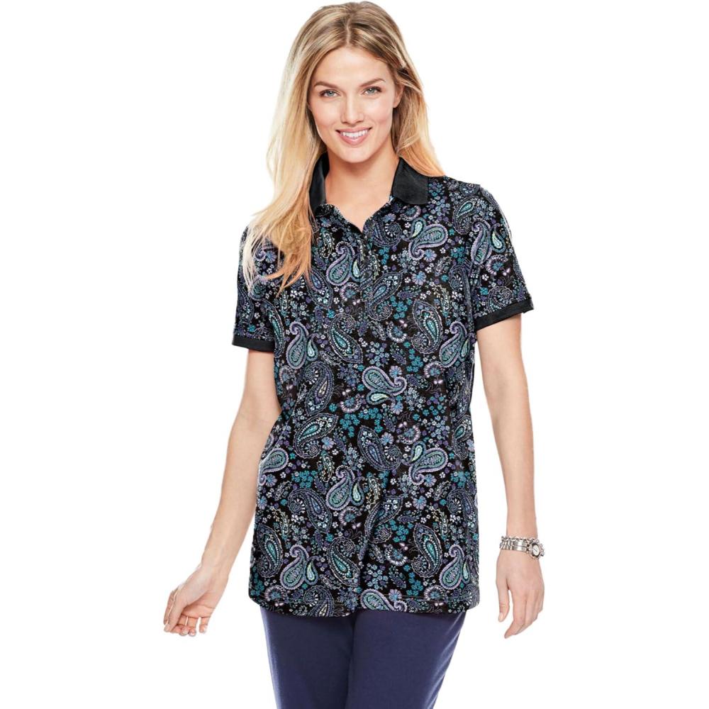 Be the first to review “Woman Within Plus Size Perfect Printed Short-Sleeve Polo Shirt(Black Paisley)”