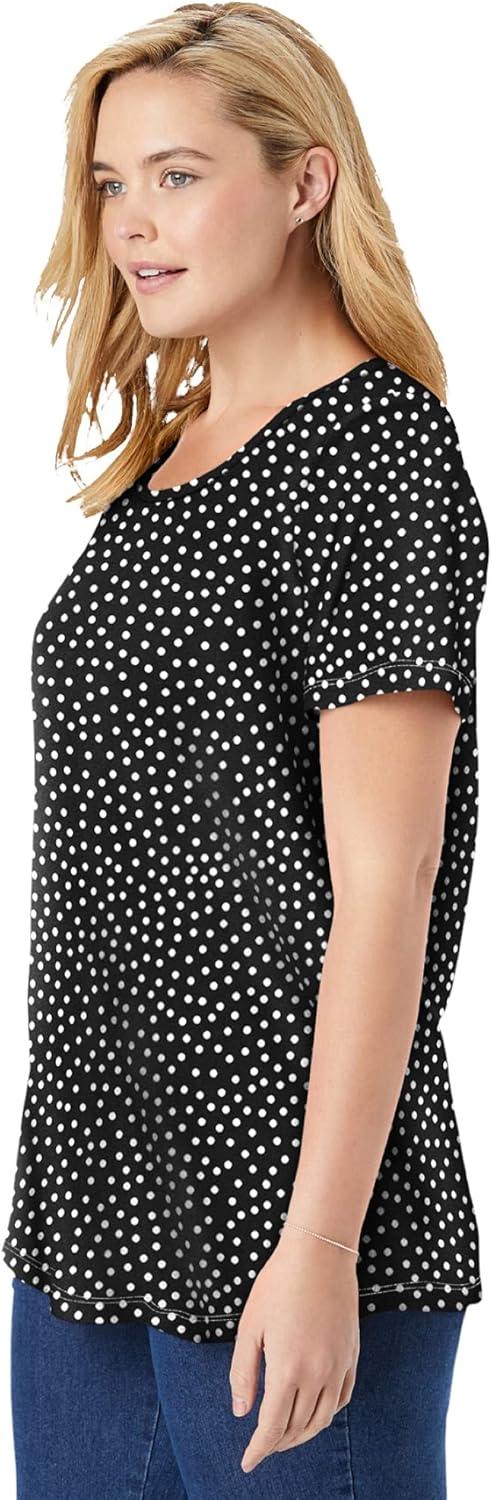 Woman Within Plus Size Perfect Printed Short-Sleeve Scoopneck Tee(White Lovely Ditsy)