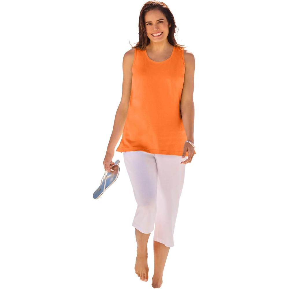 Woman Within Plus Size Perfect Scoopneck Tank (Petite Available)(Orange Twist)