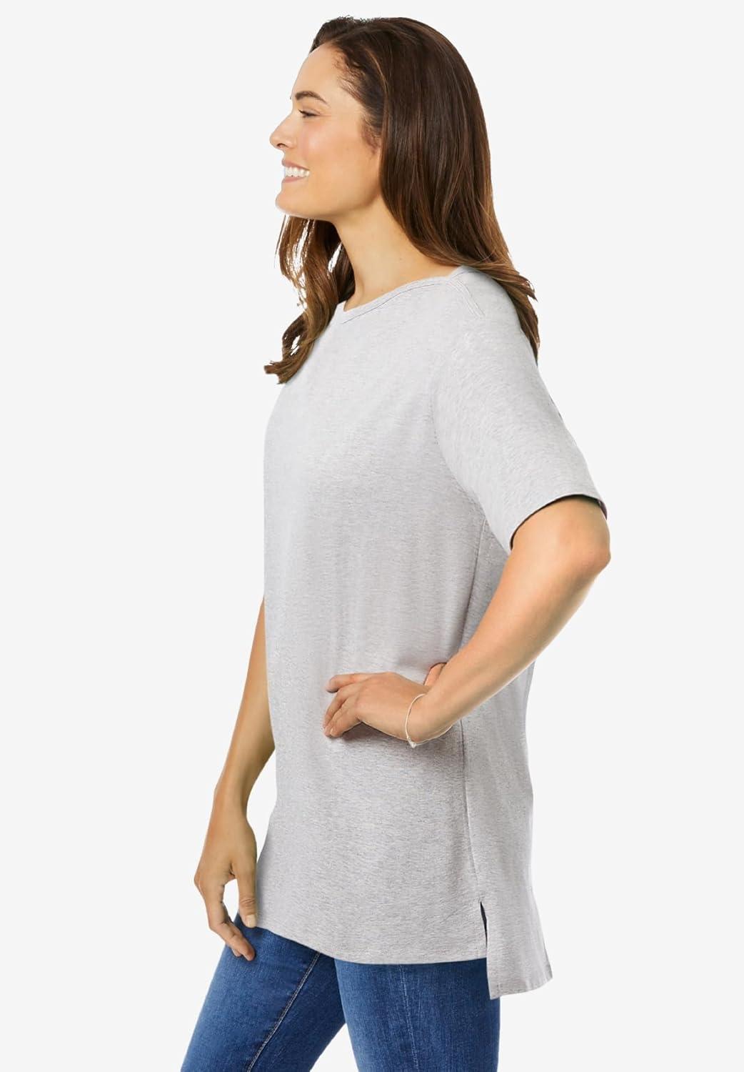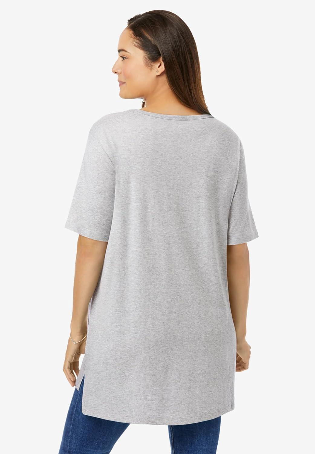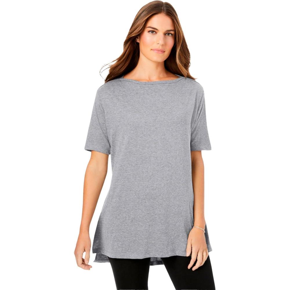 Woman Within Plus Size Perfect Short-Sleeve Boatneck Tunic(Heather Grey)