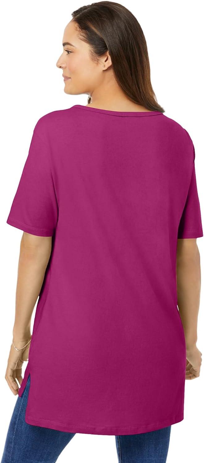 Woman Within Plus Size Perfect Short-Sleeve Boatneck Tunic(Raspberry)