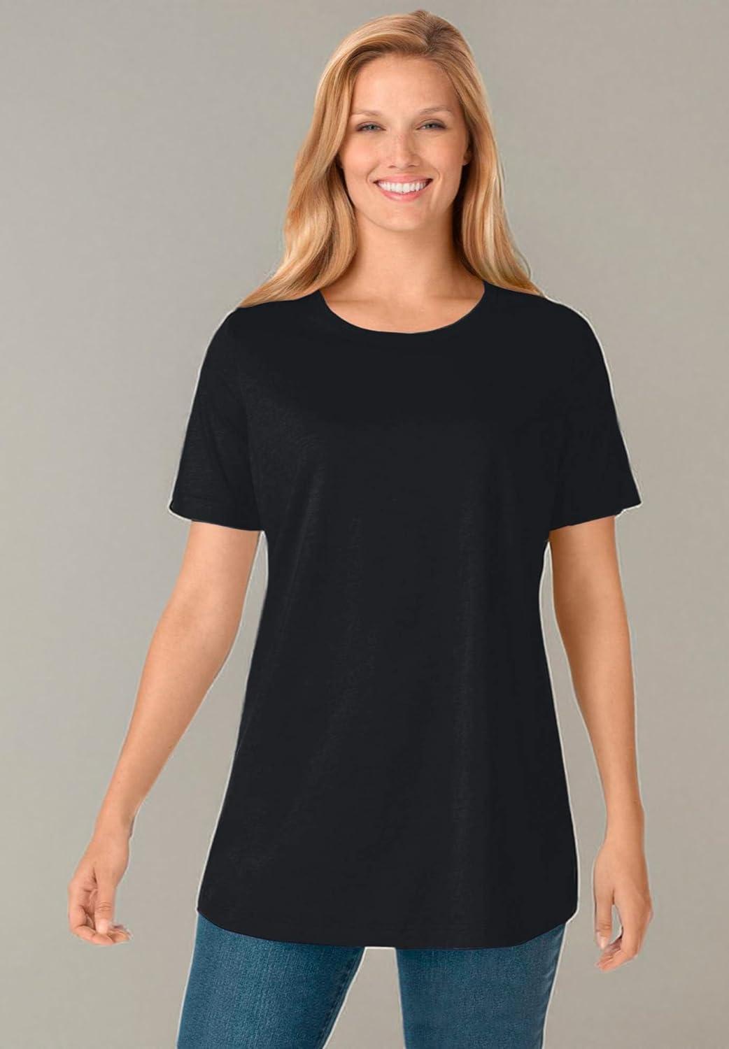 Woman Within Plus Size Perfect Short-Sleeve Crewneck Tee (Petite Available)(Black)