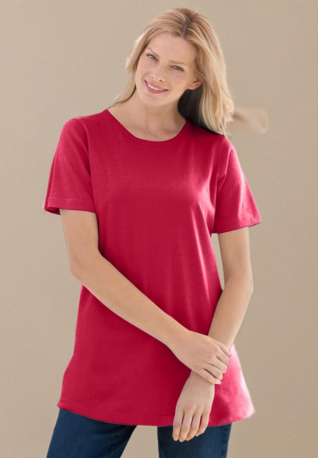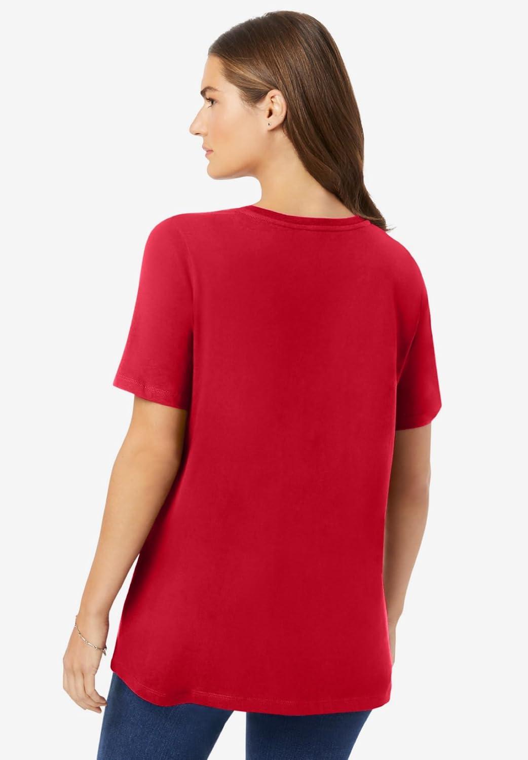 Woman Within Plus Size Perfect Short-Sleeve Crewneck Tee (Petite Available)(Classic Red)