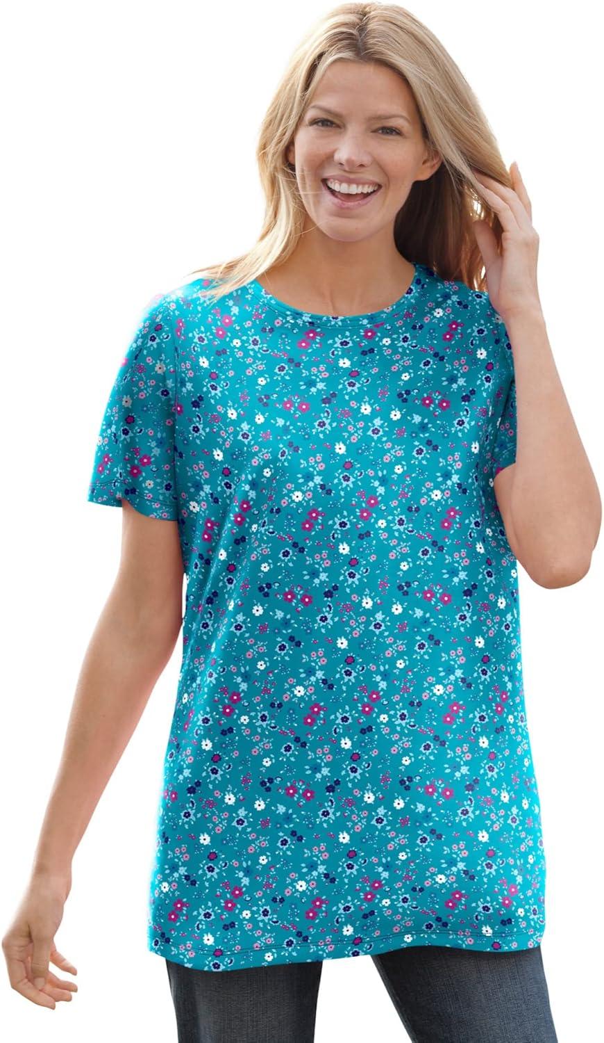 Woman Within Plus Size Perfect Short-Sleeve Crewneck Tee (Petite Available)(French Blue)