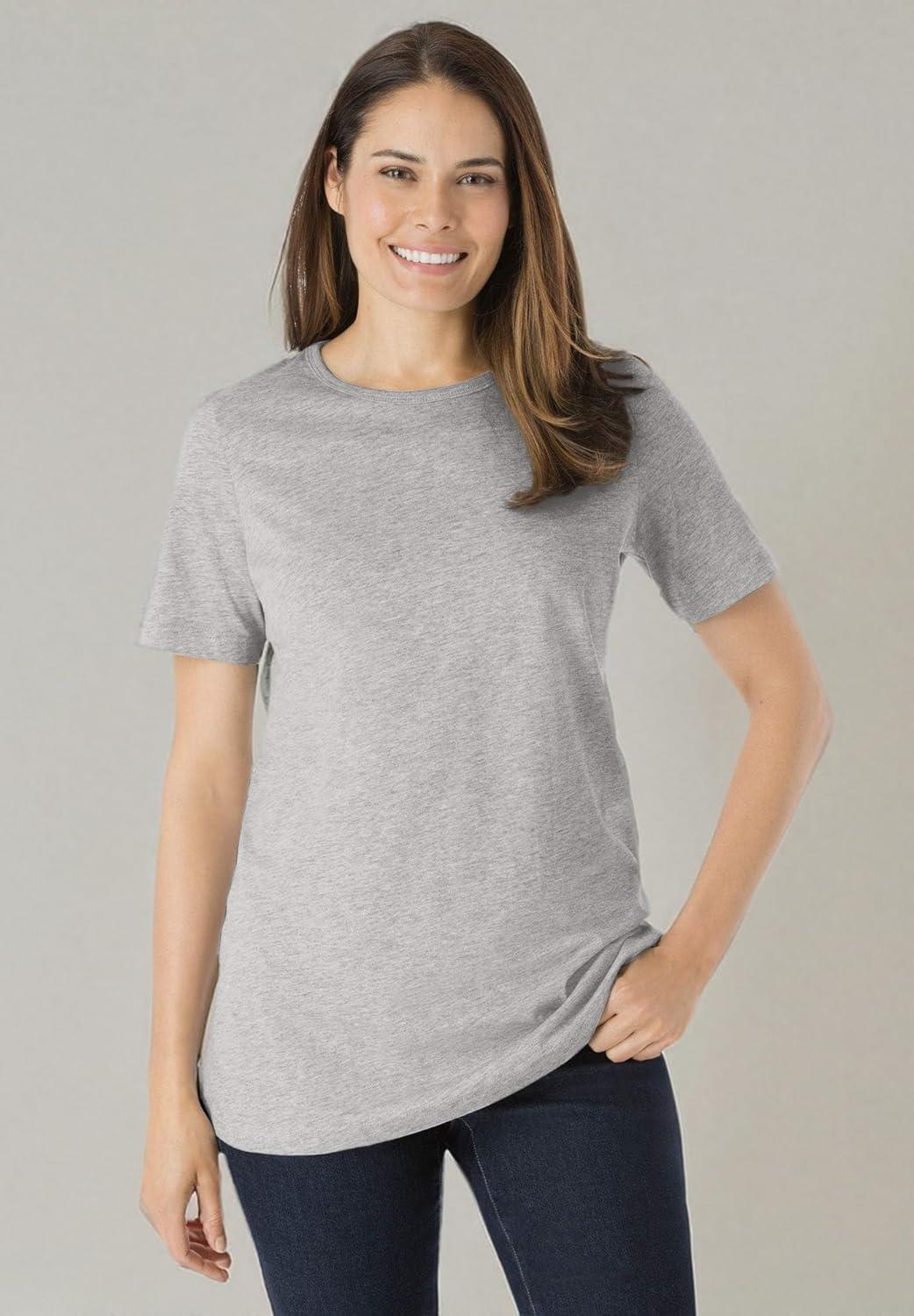 Woman Within Plus Size Perfect Short-Sleeve Crewneck Tee (Petite Available)(Heather Grey)