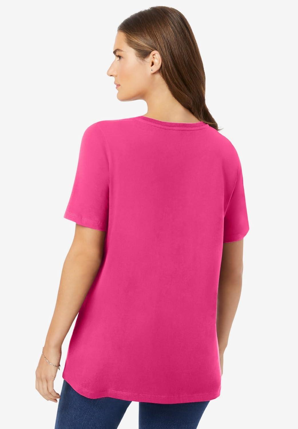 Woman Within Plus Size Perfect Short-Sleeve Crewneck Tee (Petite Available)(Raspberry Sorbet)