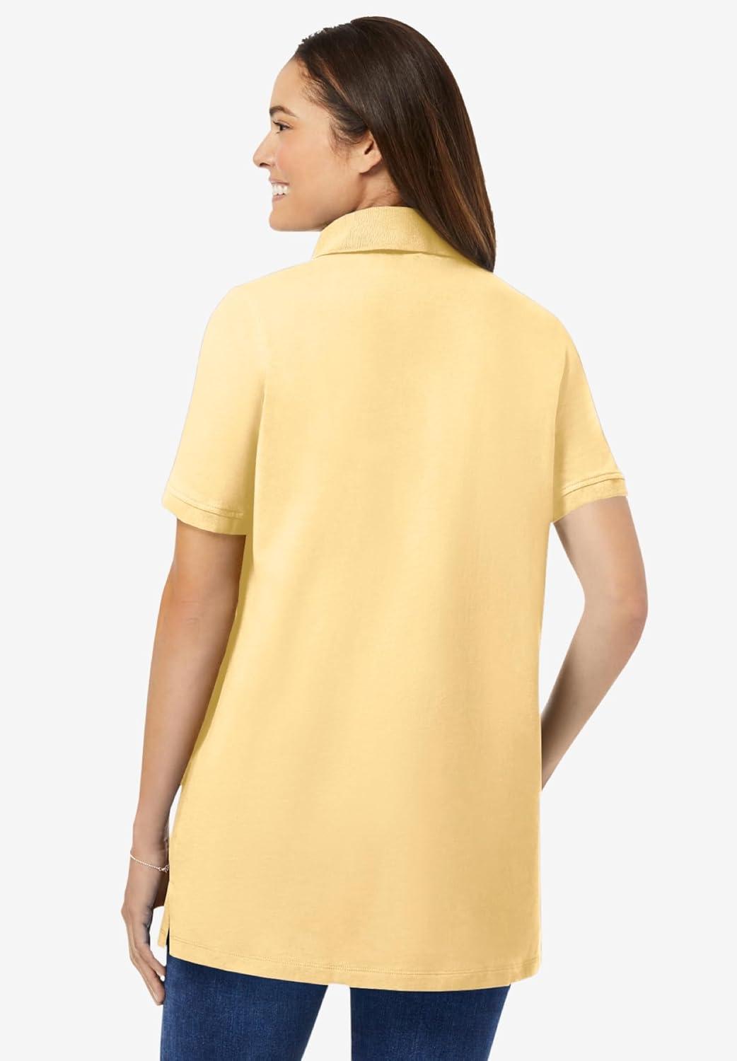 Woman Within Plus Size Perfect Short-Sleeve Polo Shirt(Banana)