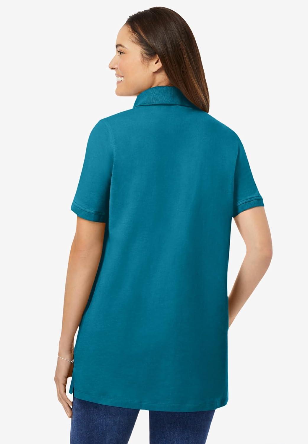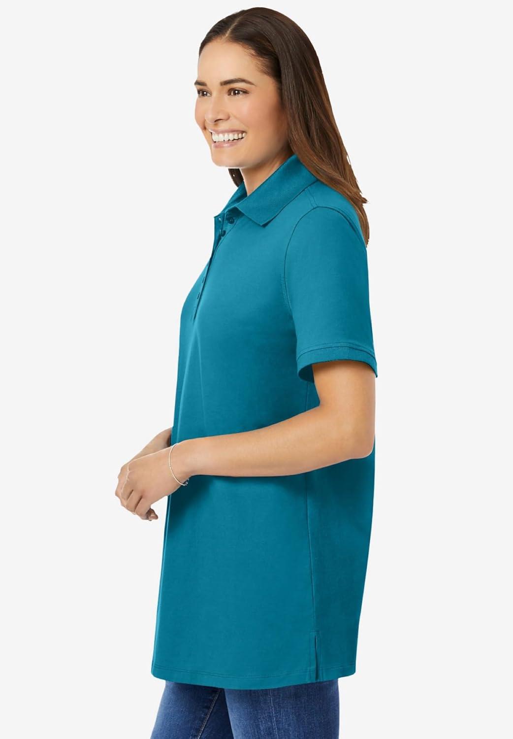 Woman Within Plus Size Perfect Short-Sleeve Polo Shirt(Deep Teal)
