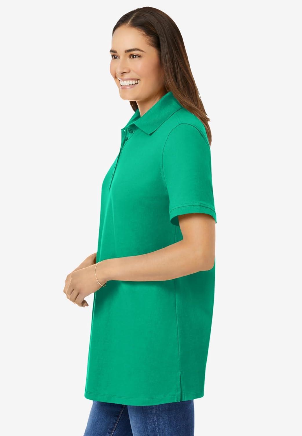 Woman Within Plus Size Perfect Short-Sleeve Polo Shirt(Tropical Emerald)