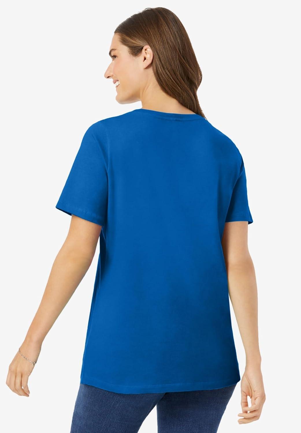 Woman Within Plus Size Perfect Short-Sleeve Scoopneck Tee(Bright Cobalt)