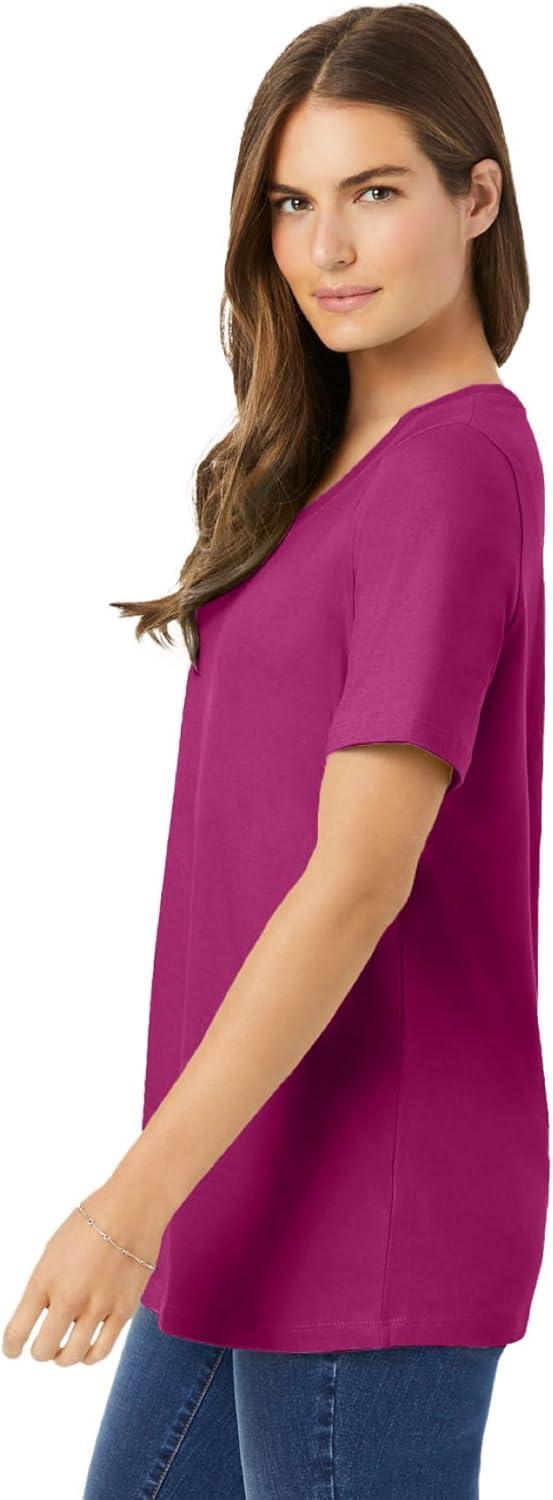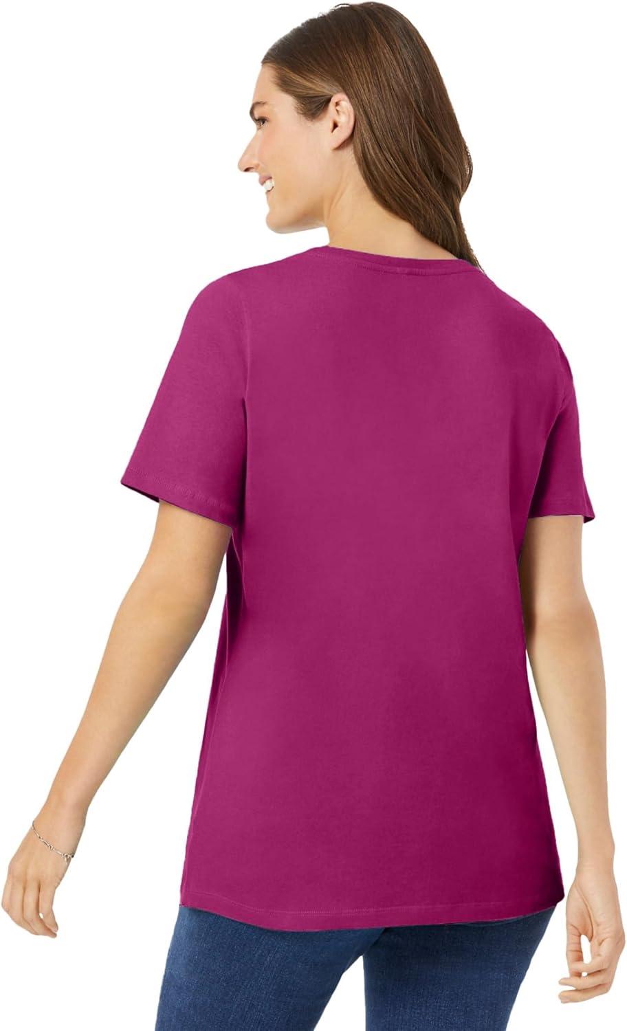 Woman Within Plus Size Perfect Short-Sleeve Scoopneck Tee(Raspberry)