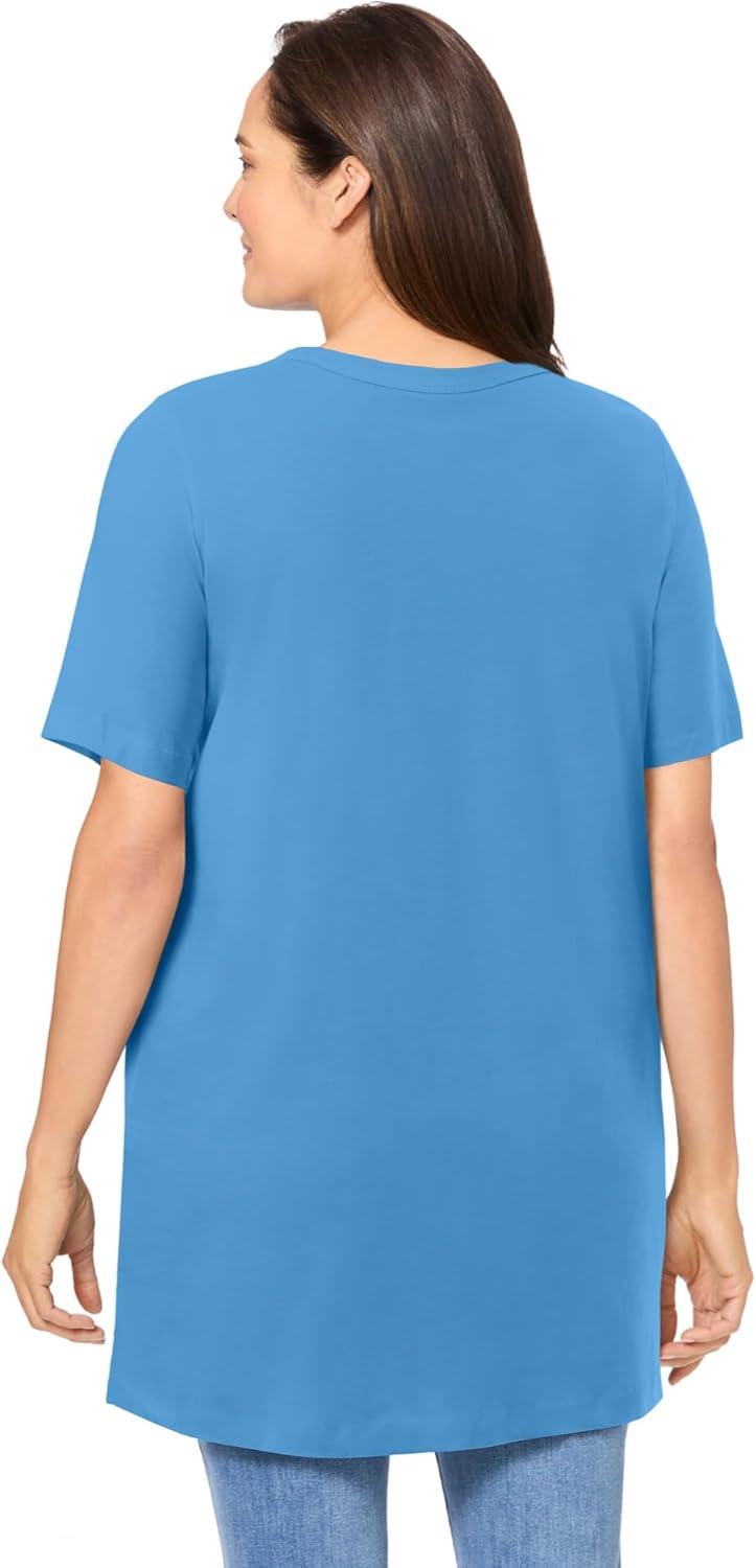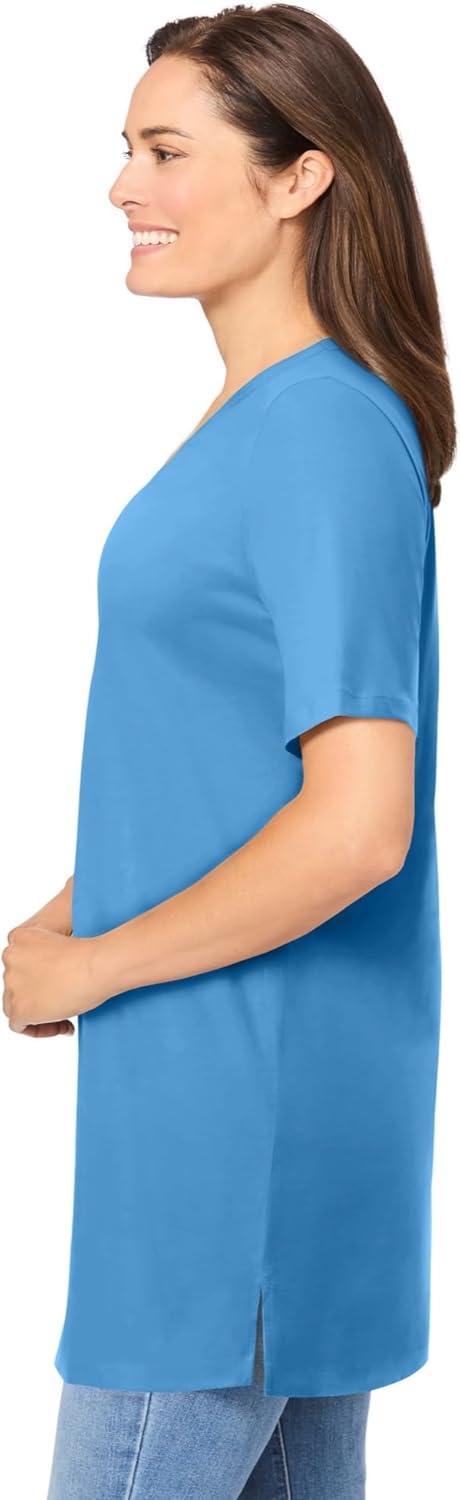 Woman Within Plus Size Perfect Short-Sleeve Shirred V-Neck Tunic(Azure Blue)