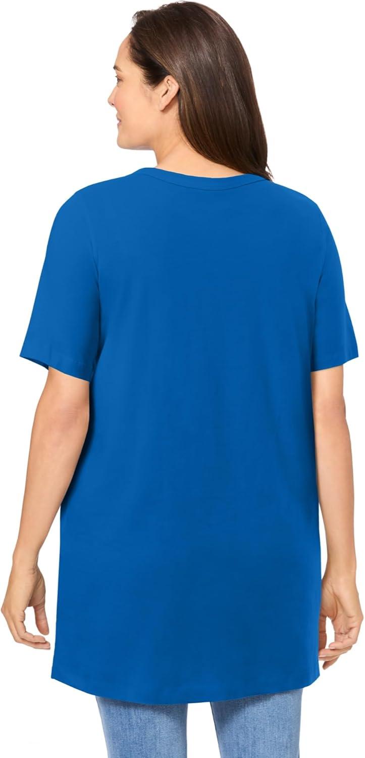Woman Within Plus Size Perfect Short-Sleeve Shirred V-Neck Tunic(Bright Cobalt)