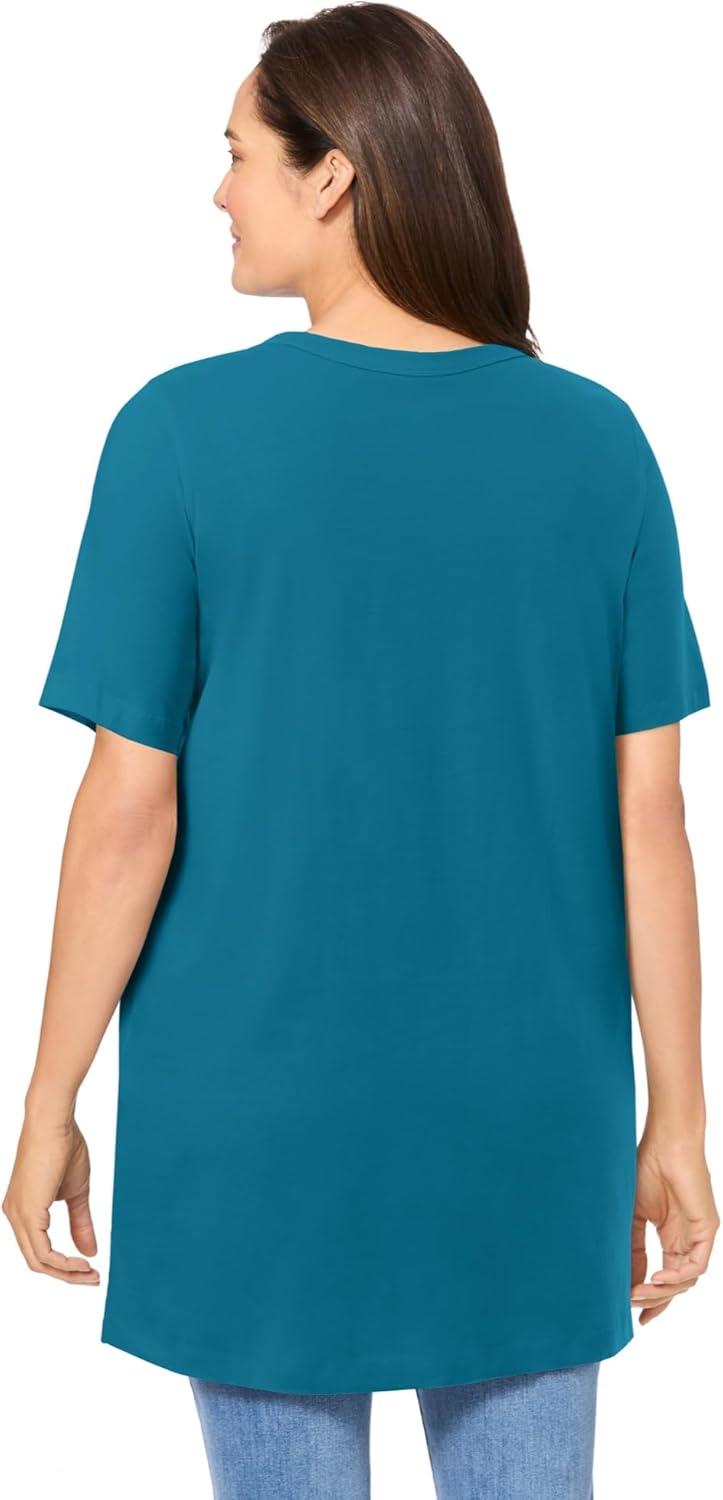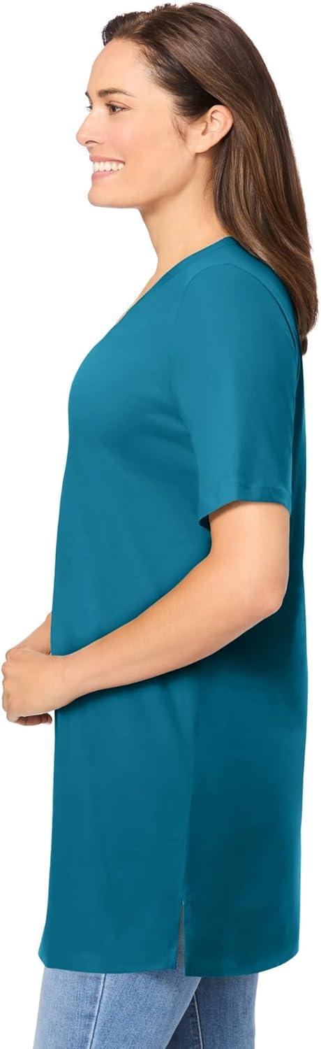 Woman Within Plus Size Perfect Short-Sleeve Shirred V-Neck Tunic(Deep Teal)