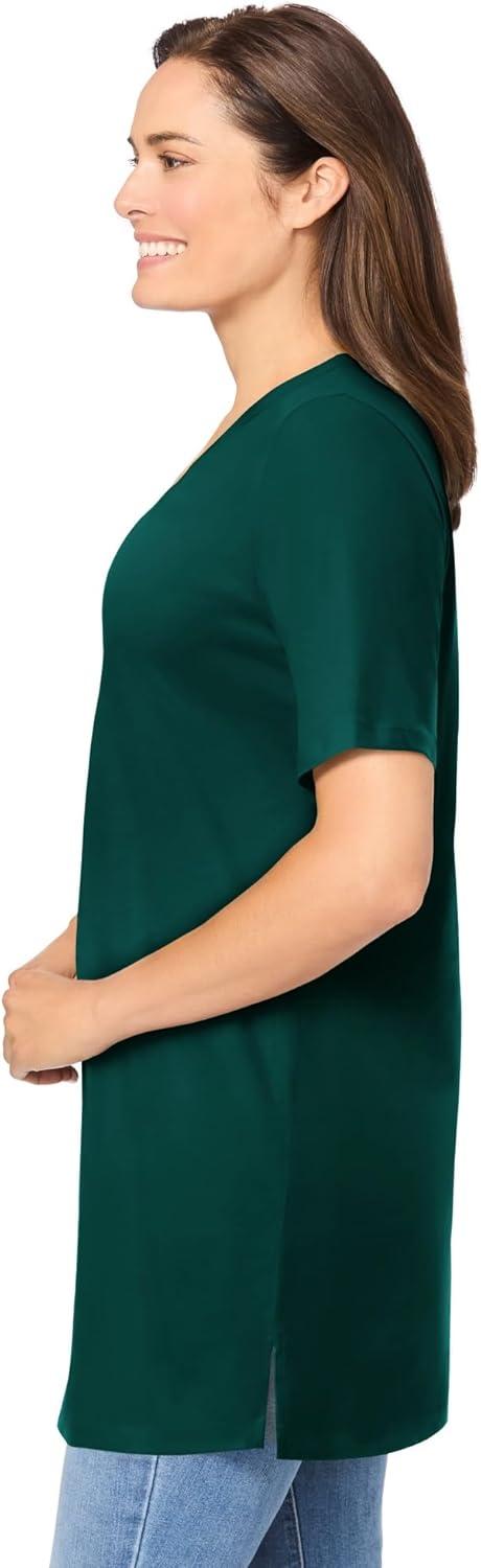 Woman Within Plus Size Perfect Short-Sleeve Shirred V-Neck Tunic(Emerald Green)
