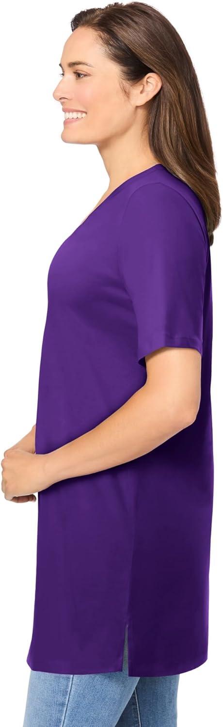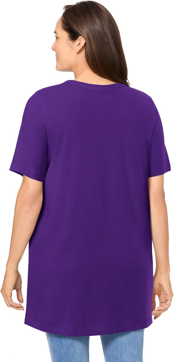 Woman Within Plus Size Perfect Short-Sleeve Shirred V-Neck Tunic(Radiant Purple)