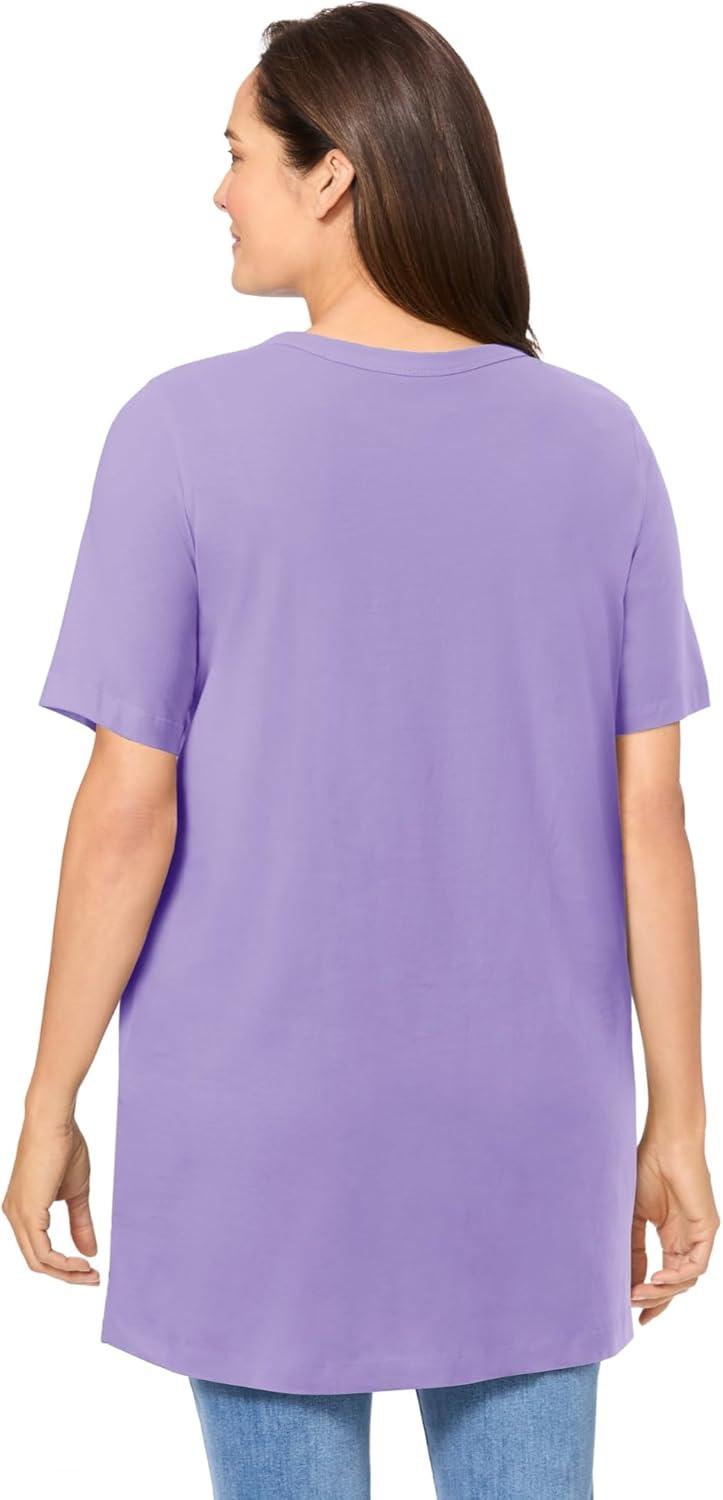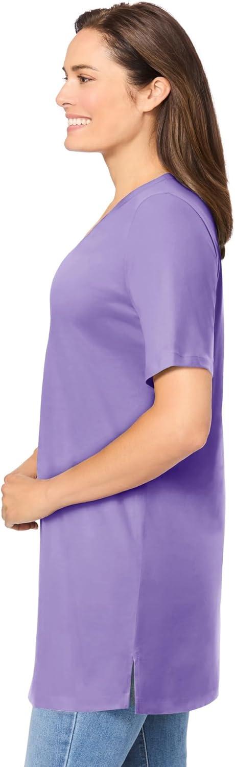 Woman Within Plus Size Perfect Short-Sleeve Shirred V-Neck Tunic(Soft Iris)