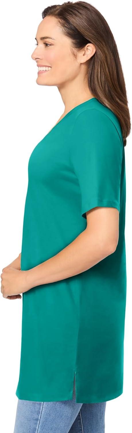 Woman Within Plus Size Perfect Short-Sleeve Shirred V-Neck Tunic(Waterfall)