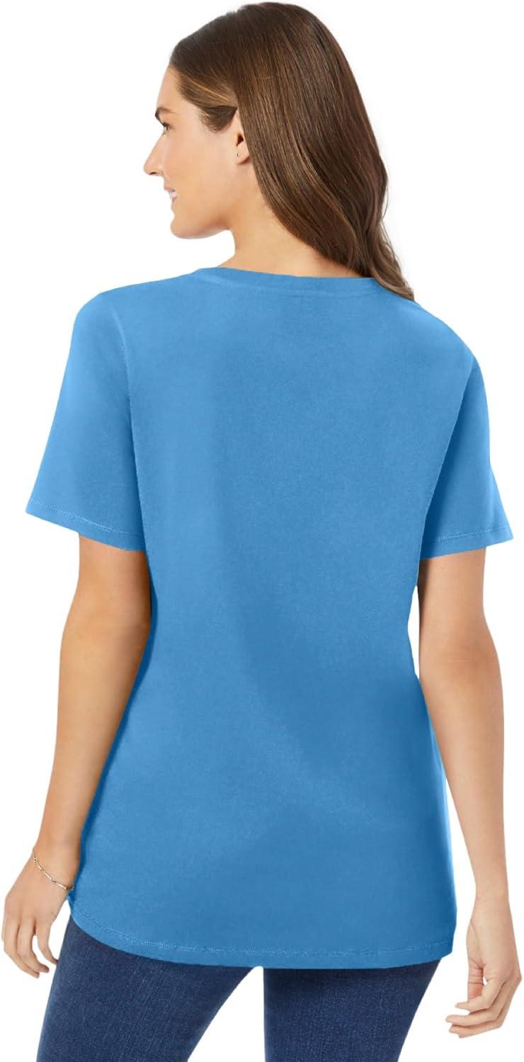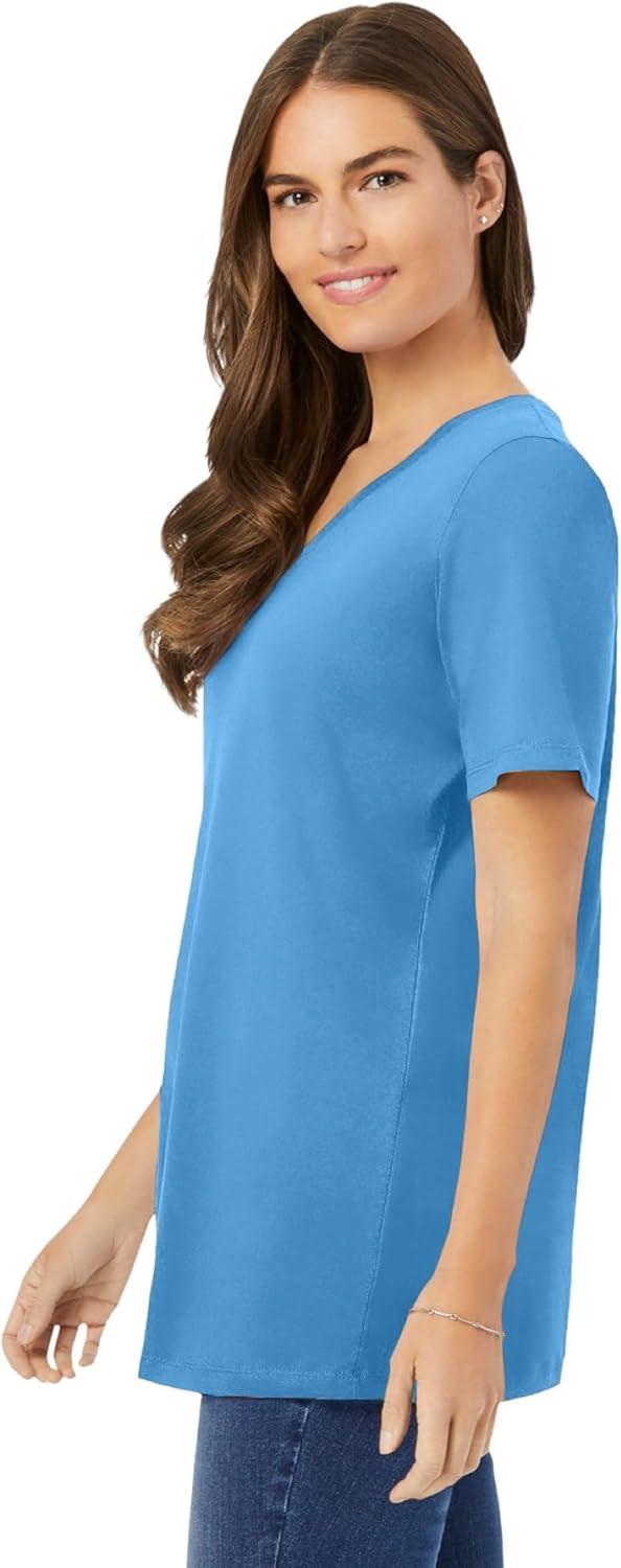 Woman Within Plus Size Perfect Short-Sleeve V-Neck Tee (Petite Available)(Azure Blue)