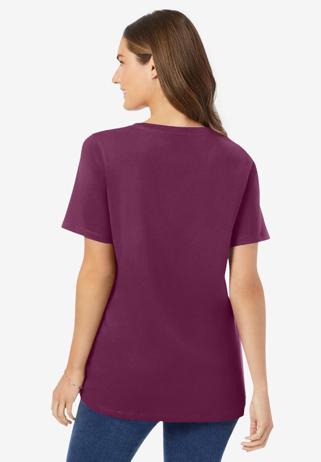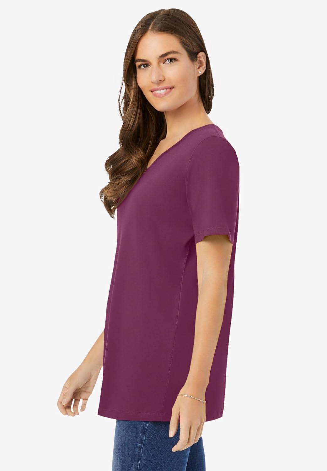 Woman Within Plus Size Perfect Short-Sleeve V-Neck Tee (Petite Available)(Deep Claret)