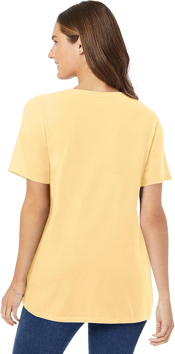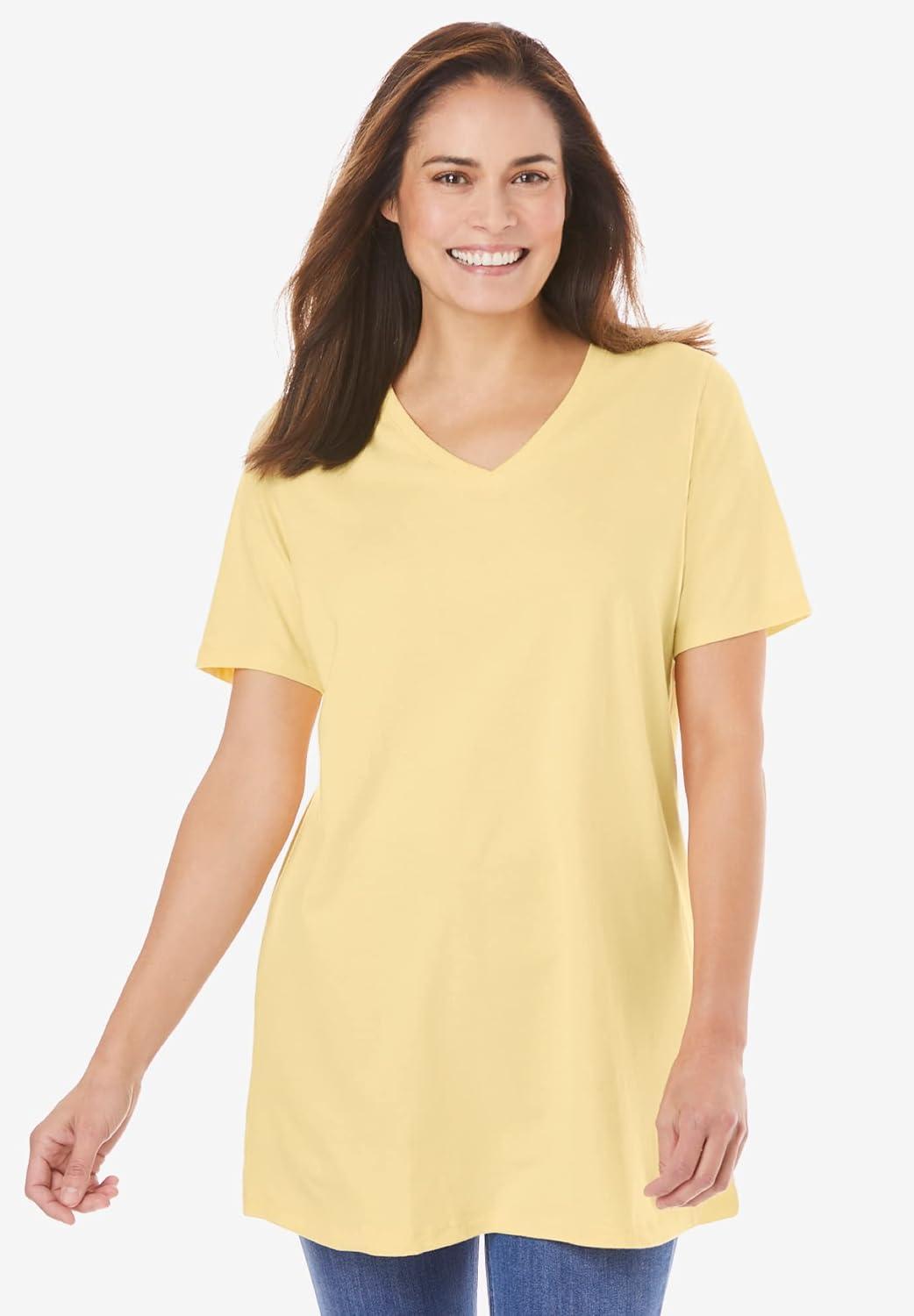 Woman Within Plus Size Perfect Short-Sleeve V-Neck Tunic(Banana)