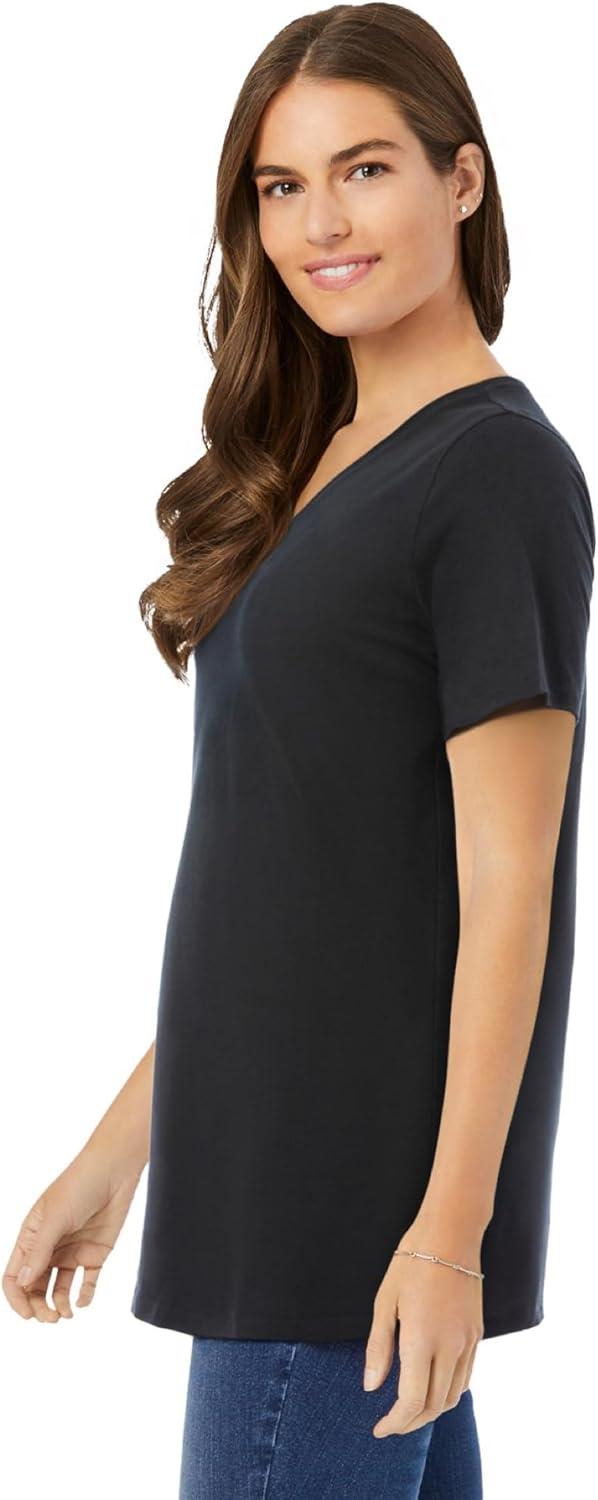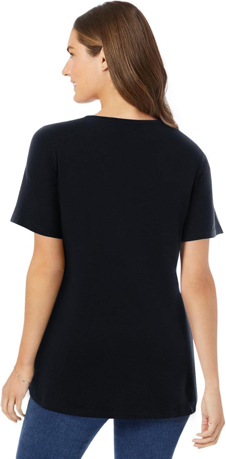 Woman Within Plus Size Perfect Short-Sleeve V-Neck Tunic(Black)