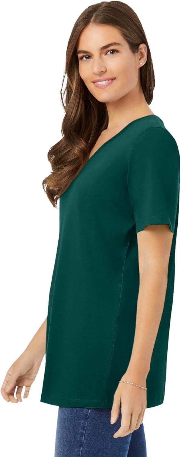 Woman Within Plus Size Perfect Short-Sleeve V-Neck Tunic(Emerald Green)