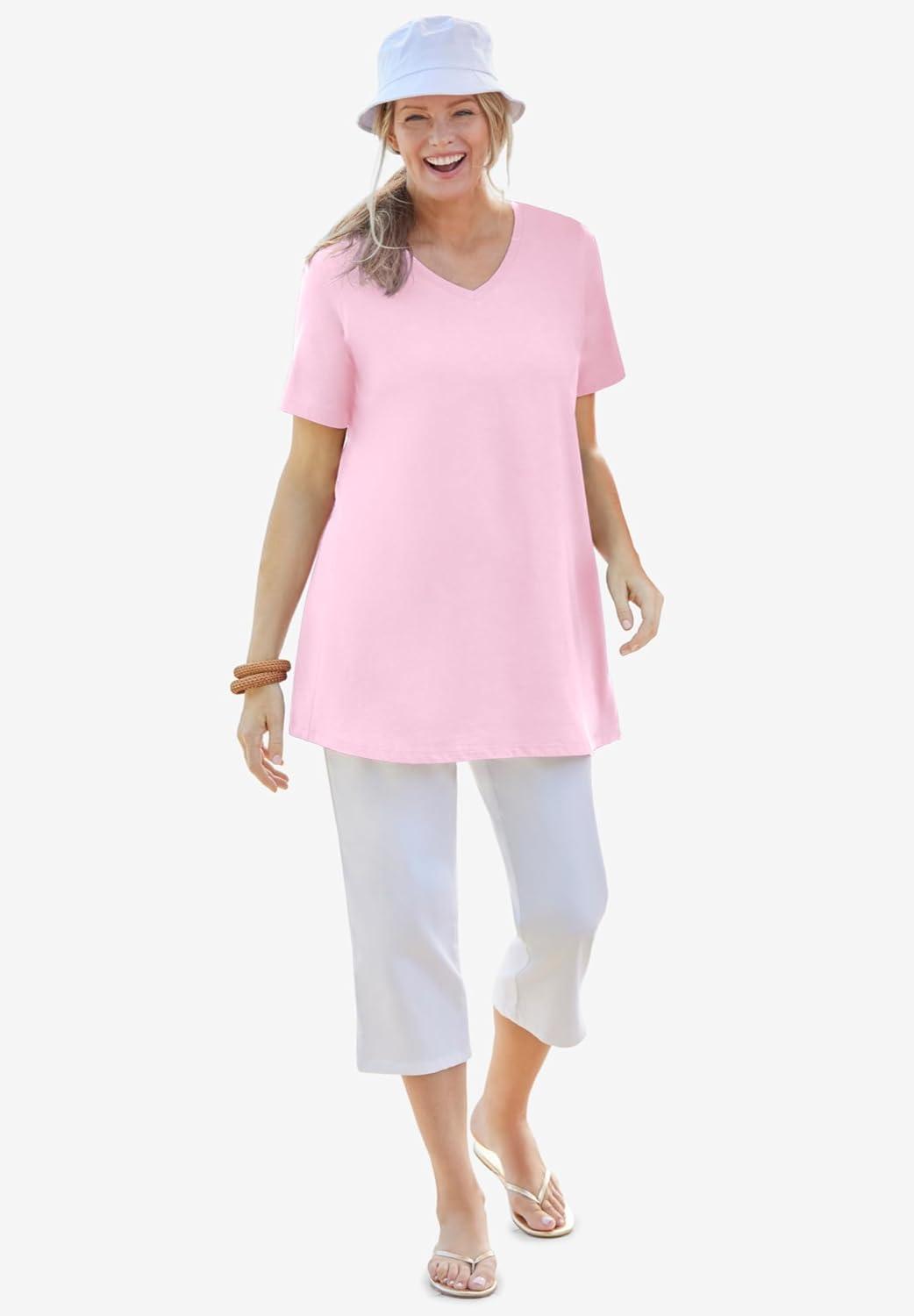 Enjoy maximum comfort with this relaxed-fit tunic that feels like your favorite tee but with added length for extra coverage. br> Flattering V-neckline perfect for layering or wearing solo. br> Designed with a straight hem that pairs seamlessly with jeans, leggings, and more. br> 30″ tunic length provides perfect coverage and confidence in every outfit. br> Crafted from quality fabric: Solids are 100% cotton; Prints/Heathers are a cotton/poly blend. br> Easy care with machine wash convenience makes this tunic a practical addition to your wardrobe. br> br> Imported