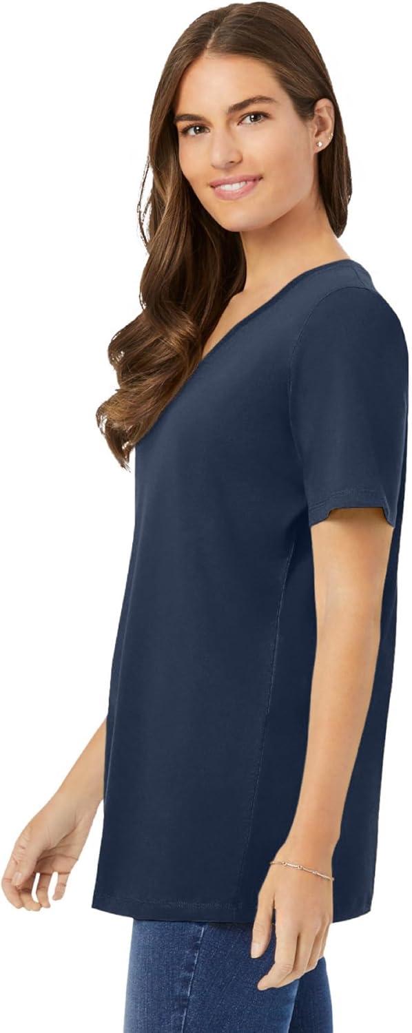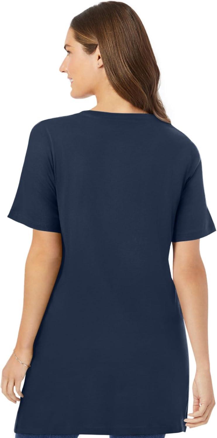 Woman Within Plus Size Perfect Short-Sleeve V-Neck Tunic(Navy)